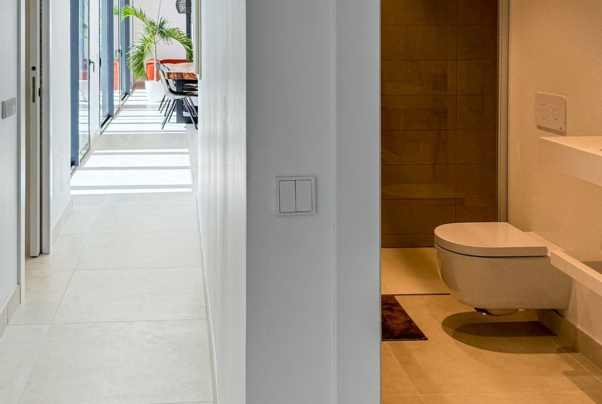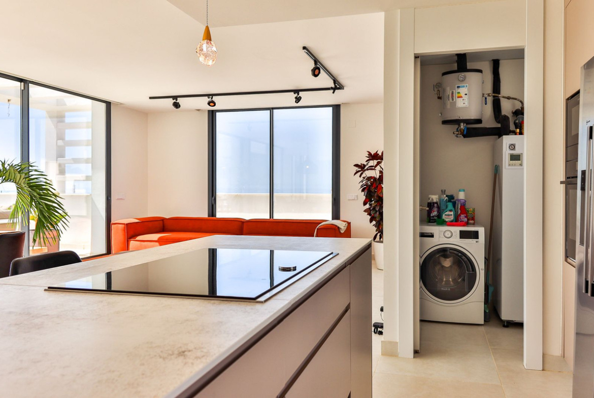 Step into a world of relaxation and entertainment with a private plunge pool that overlooks the mesmerizing sea. Enjoy the seamless indoor-outdoor flow, as automatic electric awnings and sun blinds provide shade when needed. In winter you will even be able to enjoy the underfloor heating in all floors.