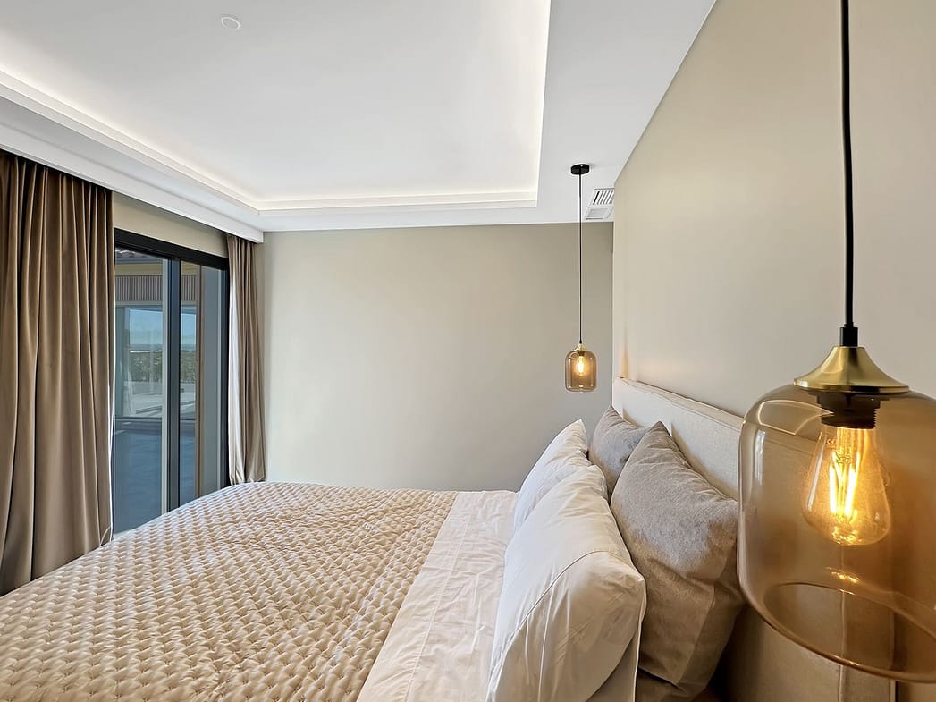 The penthouse offers 3 bedrooms and 2 bathrooms. All rooms have direct access to the terrace thru soundproofed, UV- and heat protected glass sliding doors. The master bedroom includes an integrated bathroom, creating a private, harmonious oasis.