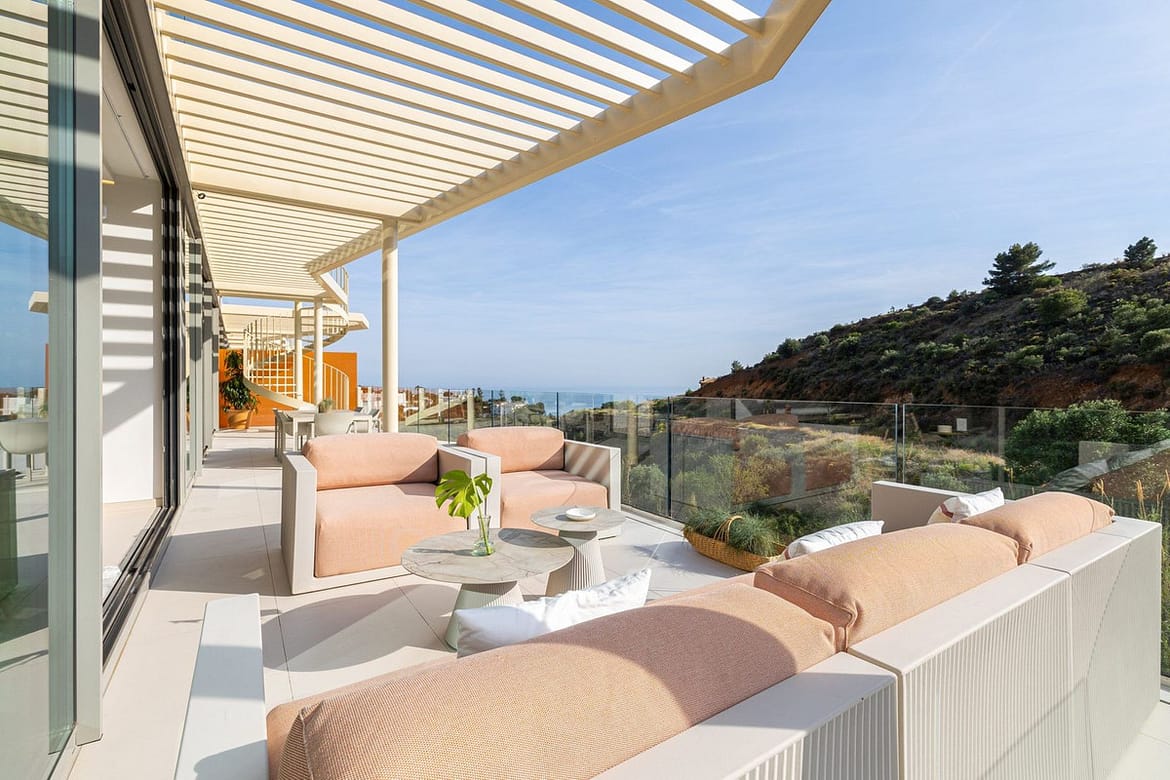 Exclusive newly built penthouse with 3 bedrooms and 3 bathrooms located in a modern two-storey building with an impressive 16-metre-long façade. The property has a bright living-dining room with a fully equipped kitchen, offering an open and functional space with high-quality finishes. Facing south-west, this penthouse enjoys natural light throughout the day and offers stunning sea and mountain views from its spacious outdoor areas: a 58 m² terrace and a 131 m² private solarium with jacuzzi, perfect for relaxing and enjoying the surroundings. It includes two parking spaces and a storage room. The development has a communal swimming pool and gardens, creating a peaceful and exclusive atmosphere. As an added bonus, the purchase of this property includes a free lifetime platinum family membership to the prestigious Higuerón Sport Club & Spa, located just a three-minute walk away. The location is unbeatable: 3 minutes from the Higuerón Resort, 4 minutes from Benalmádena and Mijas, 1 minute from the A7 motorway, 5 minutes from the train station and 15 minutes from Malaga International Airport. A unique property that combines luxury, comfort and an excellent location on the Costa del Sol.