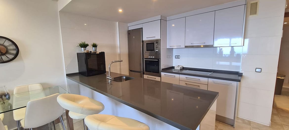 Full air conditioning, DHW, RGB LED lighting, and a kitchen open to the living room, fully equipped and furnished with a sophisticated contemporary design.