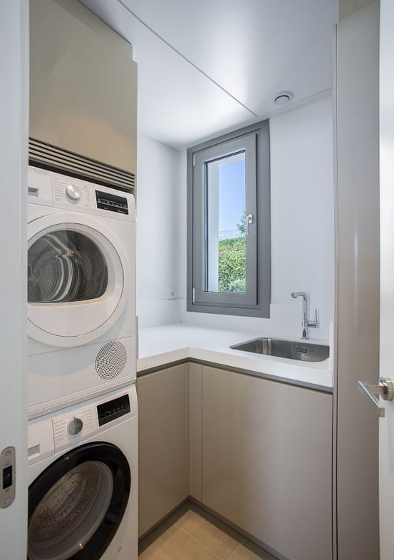 The property has 3 bedrooms, all sea facing and with access to the terrace. The terrace features a jacuzzi and has covered/uncovered sections. The property comes fully furnished by the designer team at Ambience and is ready to move in immediately. There is a separate laundry room and guest toilet and the master suite has a large walk-in closet along side a large en-suite with stand-alone bath (with mountain views!) and walk-in shower.