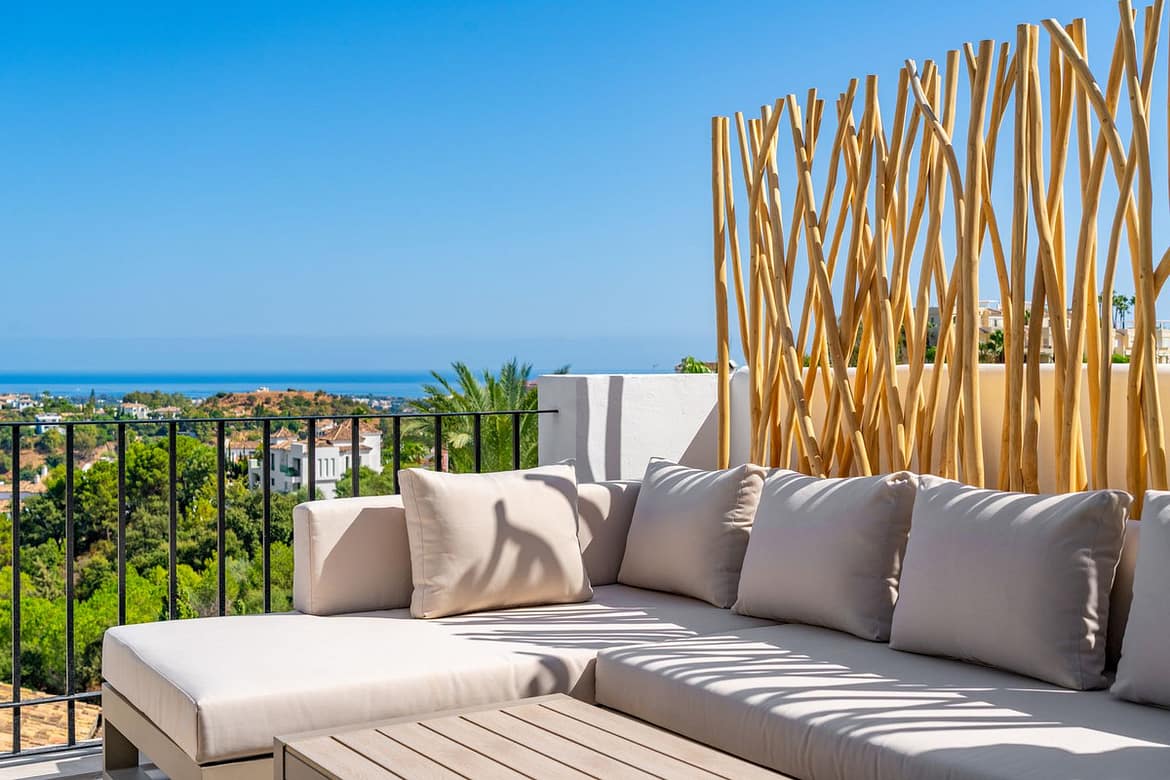 Commanding a privileged position overlooking the rolling landscape of La Quinta and the shimmering Mediterranean beyond, this brand-new, south-facing penthouse is a home defined by its outlook. Here, uninterrupted panoramic sea views form the heart of the living experience, stretching endlessly across the horizon and flooding the interiors with light from sunrise to sunset. The orientation ensures sunshine throughout the day, while the elevated vantage point captures both the dramatic natural scenery of La Quinta and the serene expanse of the sea. From the sitting room and designer kitchen to the master suite, generous terrace and even the bathroom, the panorama is ever-present — a mesmerising backdrop that shifts in colour and tone with the passing hours.