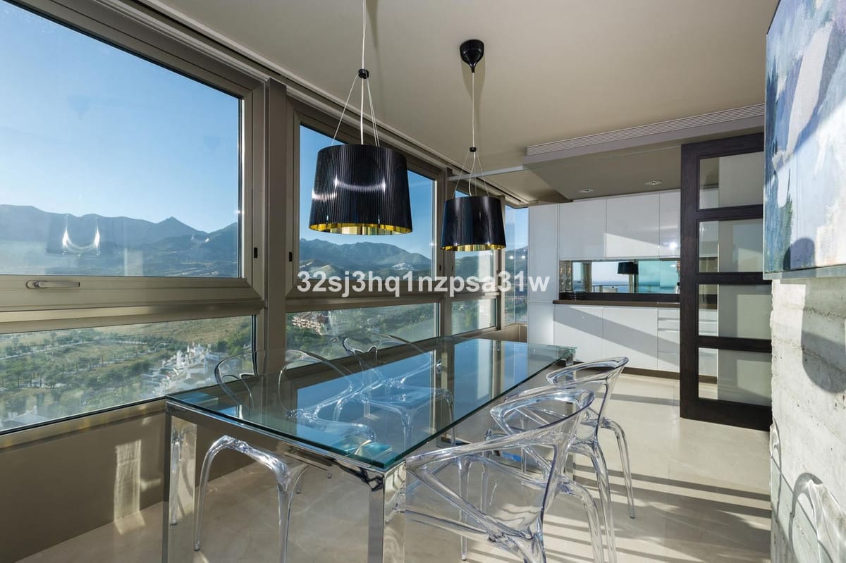 This exceptional apartment embodies contemporary refinement and Mediterranean elegance. The generous volumes unfold around a spectacular living room bathed in natural light, thanks to large bay windows that open onto 360° panoramic views: the sea, the surrounding golf greens and the majesty of the Andalusian mountains.
