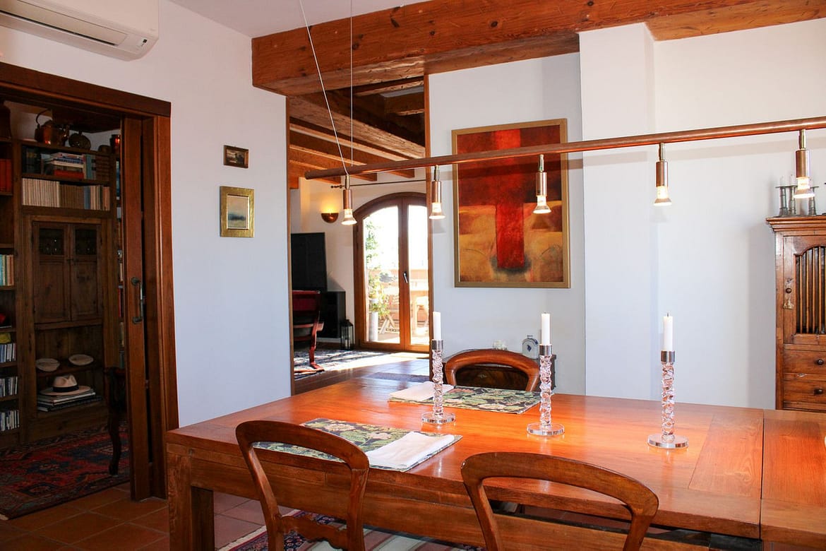 A spacious hall welcomes us to this unique penthouse, here there is a lot of light and space. A large fully equipped kitchen with separate dining area, adjacent to the kitchen is a laundry room and there is also the exit to one of the floor's lovely terraces.