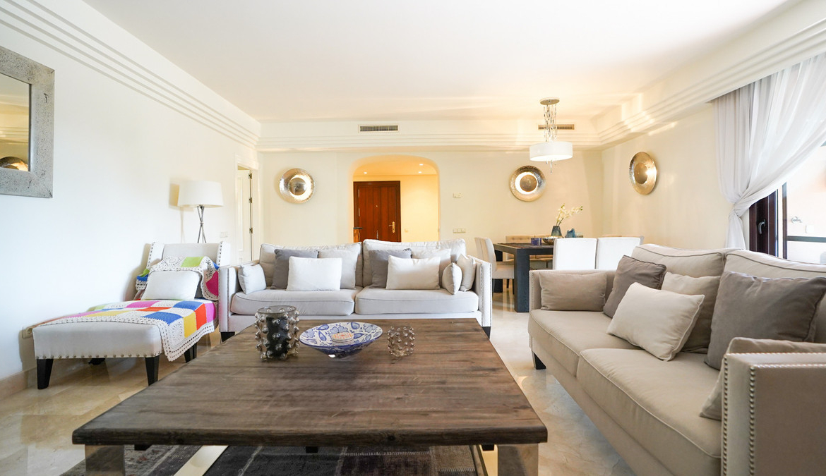 Welcome to an extraordinary duplex penthouse in the prestigious area of Marbella – Puerto Banus. This property epitomises luxury and sophistication, offering an unrivalled living experience. Designed with meticulous attention to detail, this remarkable residence boasts three spacious bedrooms and three well-appointed bathrooms. The allure of this property lies not just in its size but in the harmonious blend of its interior and exterior spaces, creating an idyllic setting that's perfect for relaxation and entertainment.