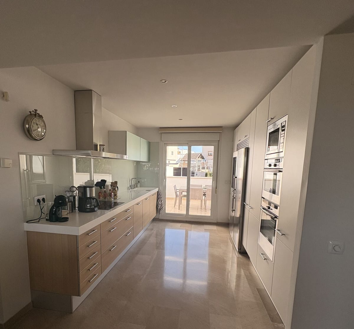 The spacious apartment offers three stylish bedrooms and two beautifully finished bathrooms. The generous living room with a fireplace creates a warm and inviting atmosphere, while the marble floors with underfloor heating and full air conditioning provide year-round comfort.