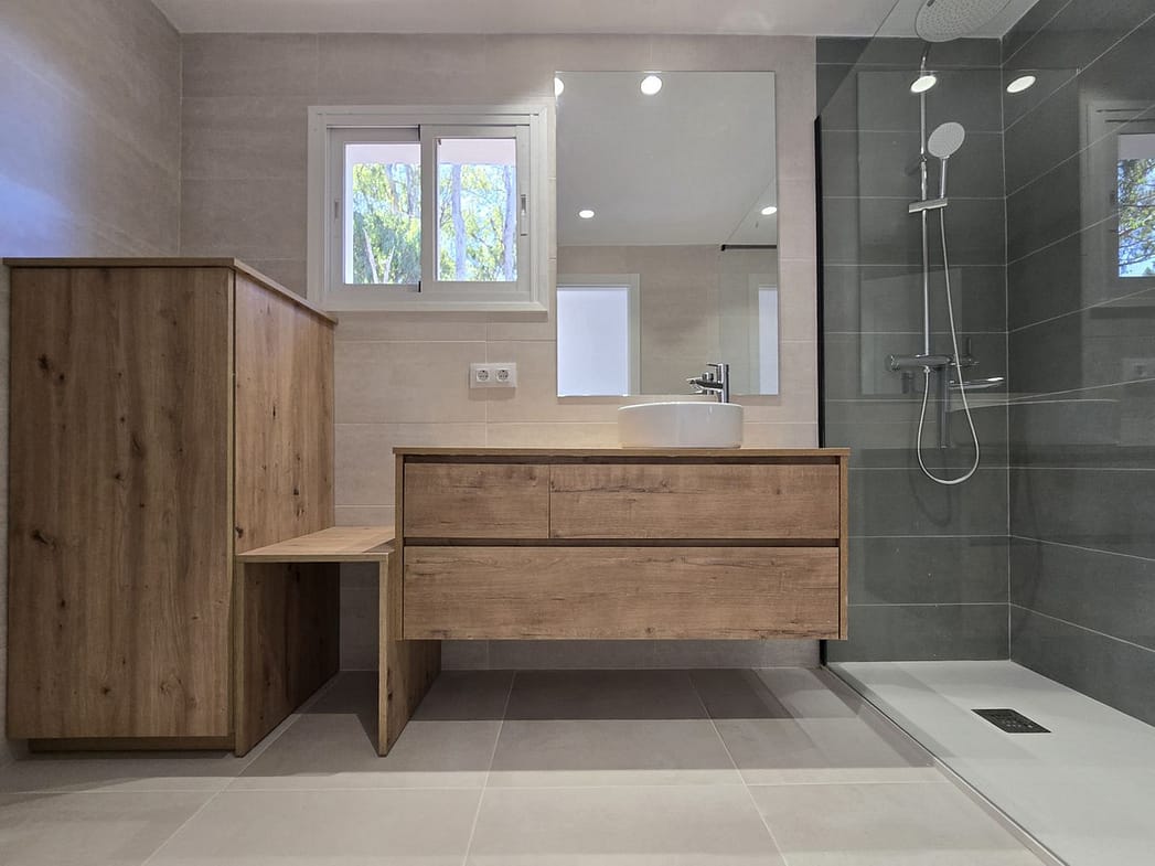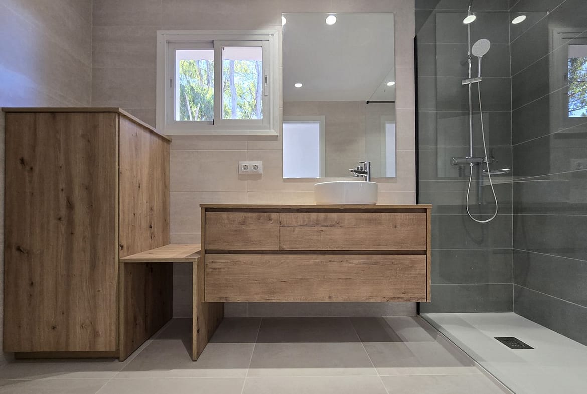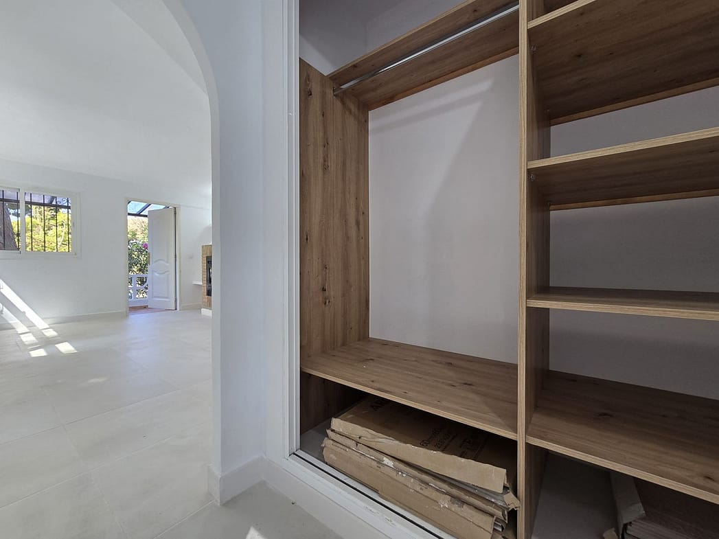 On the first floor, there are two double bedrooms with built-in wardrobes and access to a terrace. The top floor features the master suite with another brand-new full bathroom.