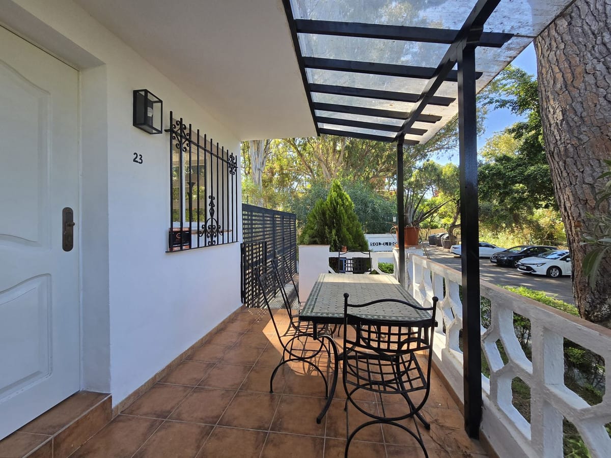 This corner townhouse, situated at the entrance of the complex and just a short walk from the beach, faces south and has been recently renovated, now ready to let. It is offered unfurnished, arranged over three levels, with the master en-suite bedroom on the top floor.