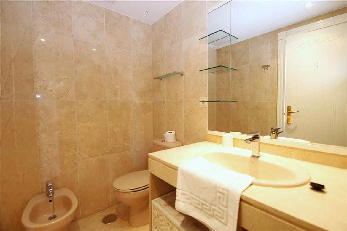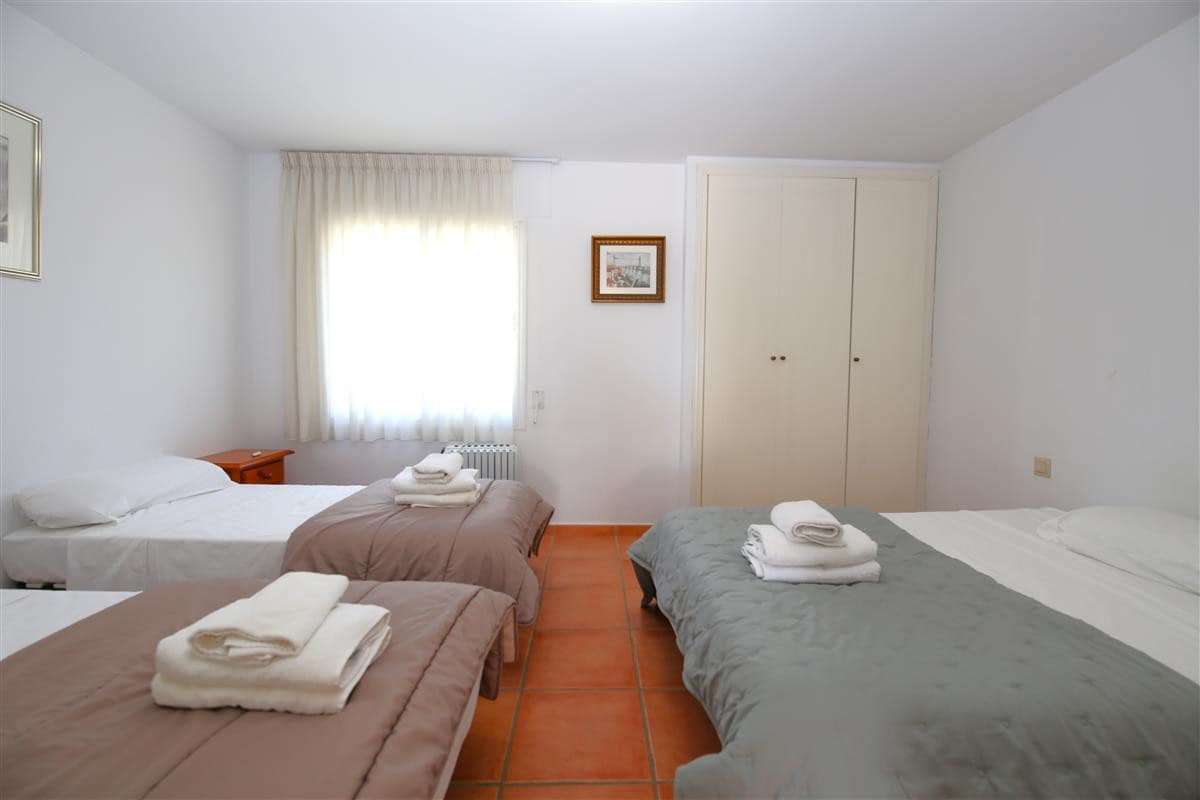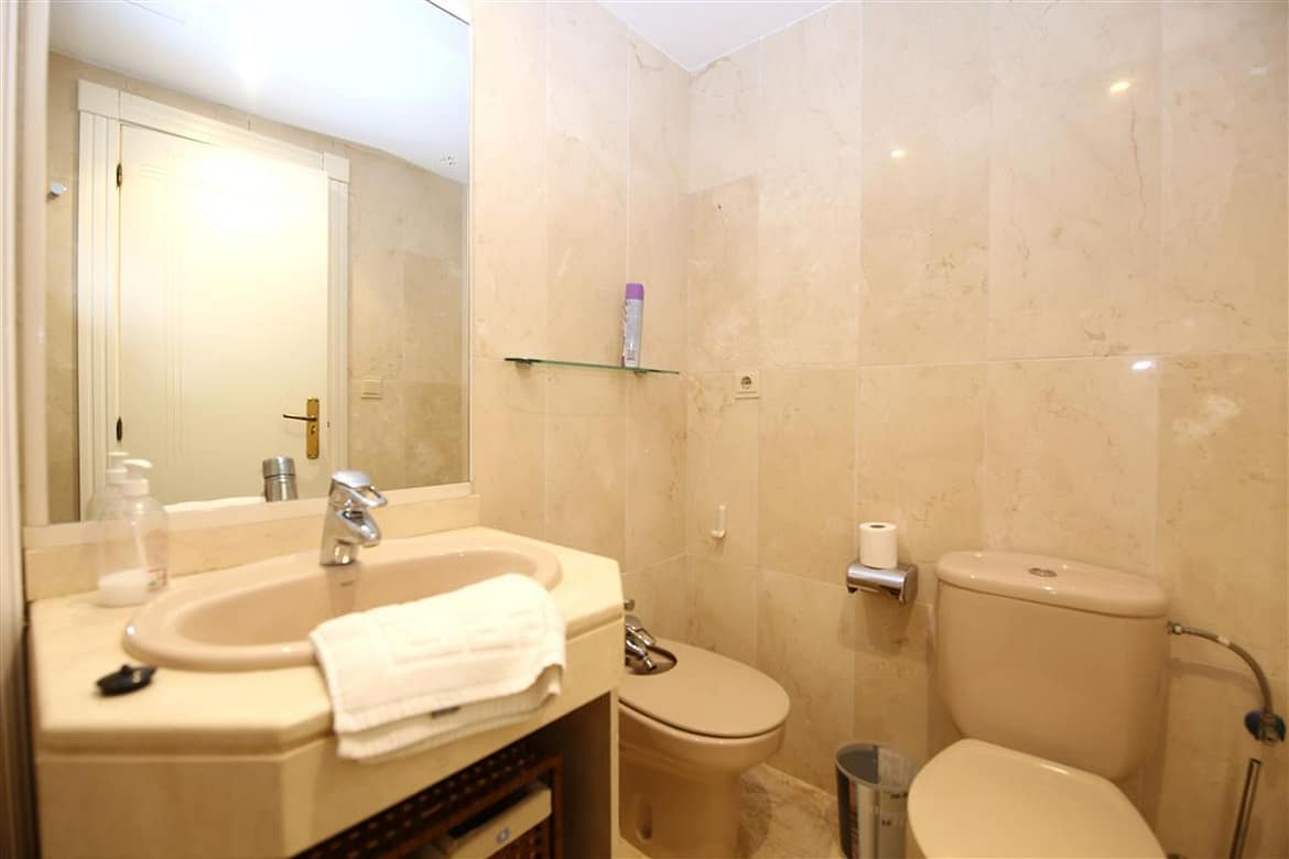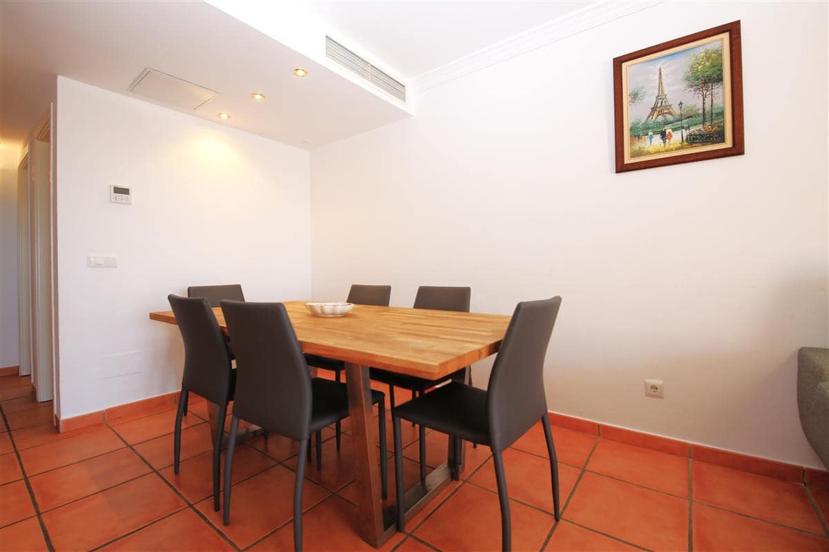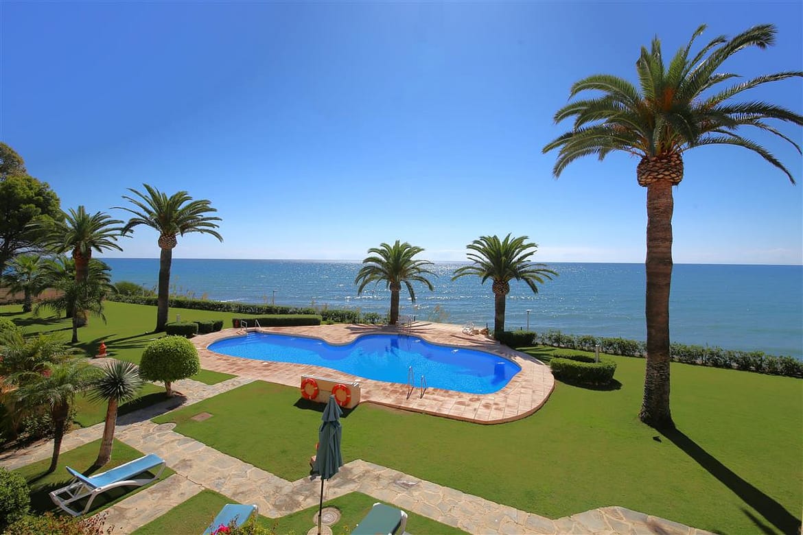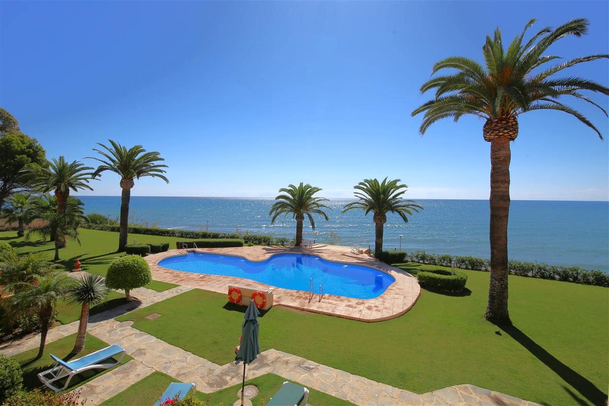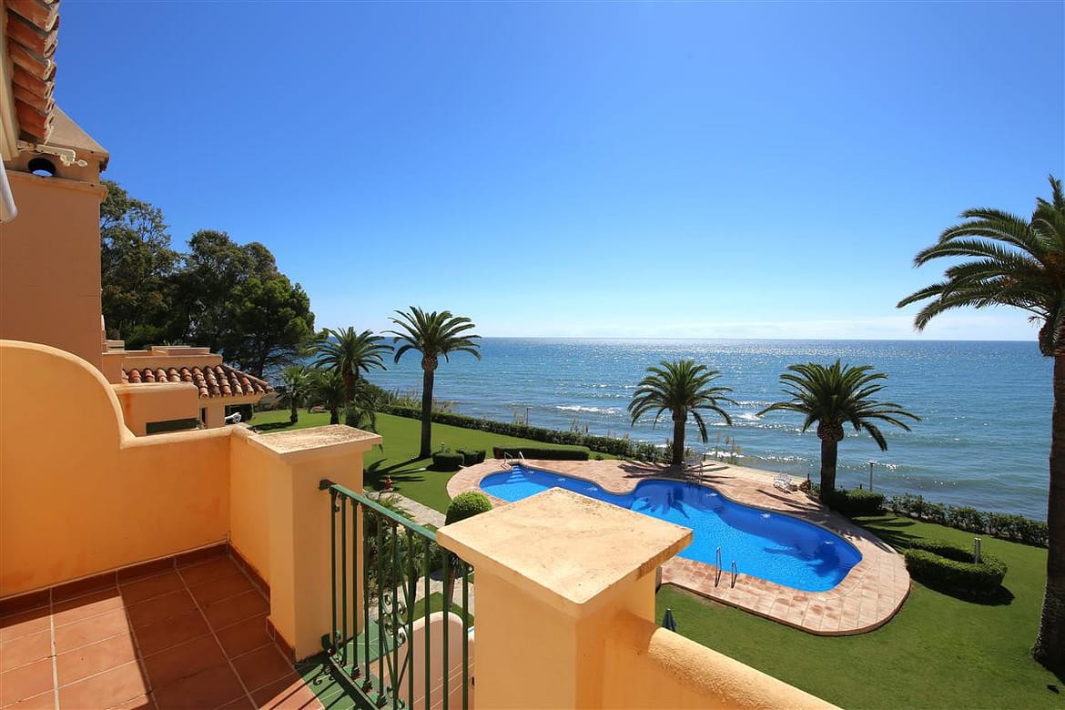 A beautiful and spacious three-bedroom townhouse located in a quiet beachfront urbanisation just outside Estepona town. The house is presented in three levels. When entering the property, we find the fully equipped kitchen to the left and it is equipped with everything you may need for a family holiday and it also has a small laundry room. There is also a guest cloakroom to a side of the corridor with WC and hand basin. The spacious living room has a dining area with seating for eight guests and a lounge area with comfortable sofa and a large flatscreen TV with plenty of international channels including Sky. The lounge has direct access to the patio terrace through the sliding doors that offer light and create a cosy atmosphere offering uninterrupted views of the gardens, pool and the sea. The terrace has an extra outdoor dining area for up to eight guests and extra comfort seating along with a gas powered BBQ. From the patio terrace we can access the well-maintained community gardens and the inviting community swimming pool with sea views. On the first floor we find two of the en-suite bedrooms. Both en-suite bathrooms in this floor are equipped with bath, overhead shower, WC, bidet and hand basin. The first bedroom has one double bed and two singles and the second bedroom has a king-size bed with a private balcony with sea views. On the top floor is the master bedroom with king-size bed and a modern en-suite bathroom with a large walk-in shower, WC, bidet and hand basin. It also has a small private balcony with lovely views to the sea and like the other bedrooms, is equipped with spacious built-in wardrobe with lots of storage space for. The entire house benefits from high-speed internet connection and central air conditioning throughout. The property also includes two private parking spaces inside the closed community gates. All these facilities in addition to the its location, make this property the perfect option for your holidays in Estepona.