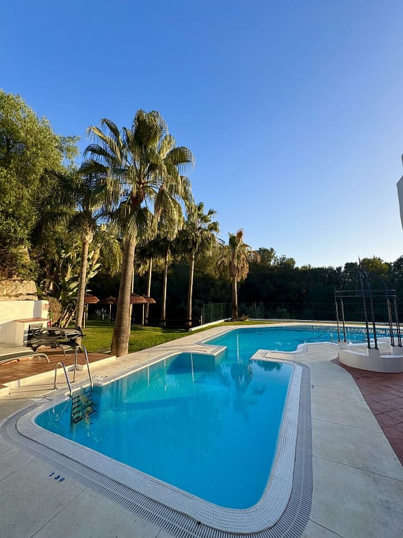 The complex is surrounded by lush nature and is very safe & family friendly with stunning communal swimming pool & children's play area with swings, slide, trampoline.