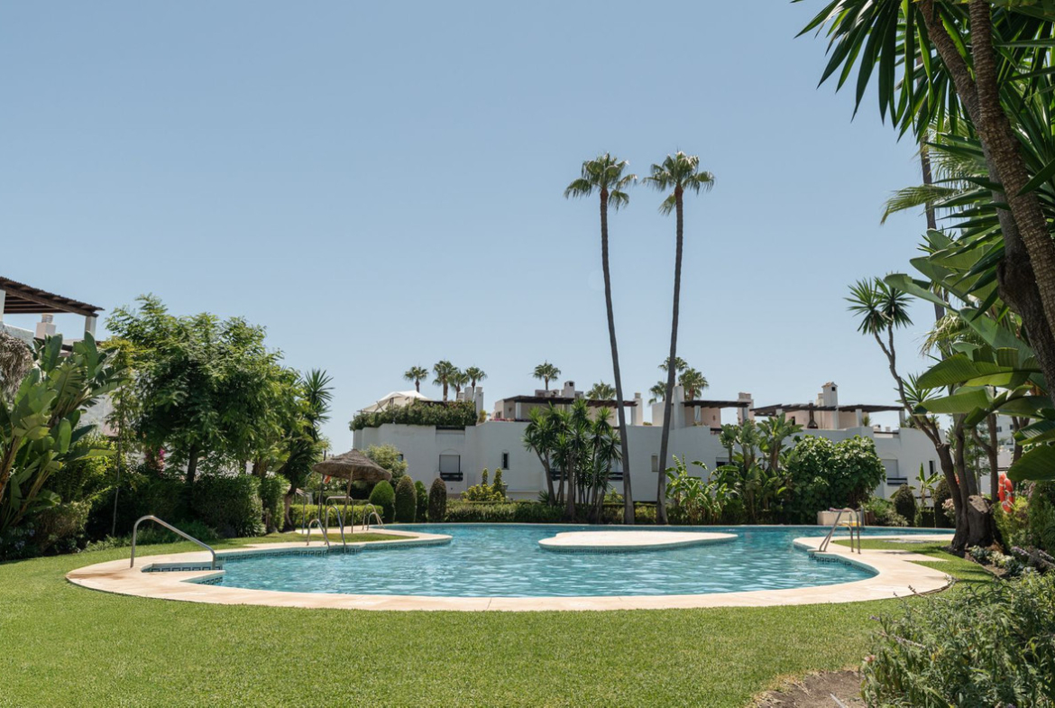 Welcome to this cozy townhouse located in a secure, gated community – just a 4-minute walk from the beach and 10 minutes on foot from the center of San Pedro de Alcántara.