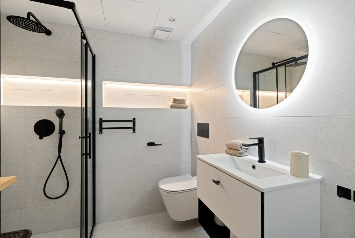 The property features three spacious bedrooms and two fully equipped bathrooms, making it ideal for families or groups of friends. The interior is tastefully decorated, offering bright, comfortable, and functional living spaces. One of the key features is a private 30 m² garden – perfect for relaxing, dining outdoors, or enjoying time with loved ones.