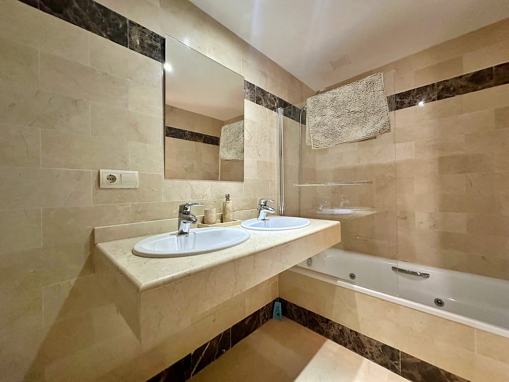 The property benefits from an entrance hallway, guest cloakroom, fully fitted kitchen, a large living room with dining area both with doors leading out on to a south facing terrace with open sea and mountain views. Ideal for al fresco dining or soaking up the sun.