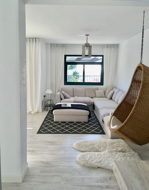 A modern semi-detached house with views of the sea and mountains. It consists of 3 bedrooms, 2 bathrooms, a living room with a kitchen, 2 terraces and a solarium with a jacuzzi. It also has a covered parking space and a storage room. The house has been modernly renovated. It is located in a residential area with a swimming pool and garden, just 10 minutes by car from the beach and 15 minutes from Malaga airport, in a quiet residential area, close to all kinds of services: restaurants, shops, pharmacies, schools. Ideal for permanent residence or holiday home.