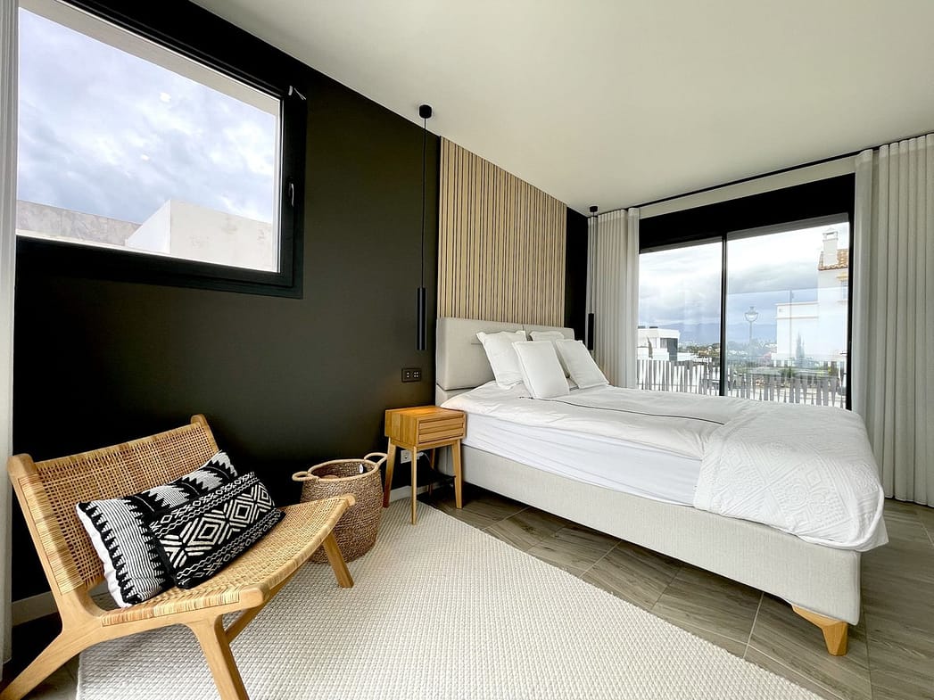 The Cape is an innovative residential project in Cabopino. This seaside wonder is located in the municipality of Marbella (Malaga), one of the most beautiful spots on Costa del Sol. The house is situated in a frontline golf, has 3 bedrooms all with en-suites and powder room, spacious terrace offers wonderful views of the Mediterranean Sea. There is a private swimming pool with sun terrace as well as private garden to enjoy the brightness of the region. The living room is designed to ensure wellbeing and offers ease and elegance with the hight of the ceiling of 3.60 metres.The architectural feature offers a very spacious and luminous space with stunning sea views to guarantee you a place of repose and leisure where to enjoy one of the most privileged areas of the world. The kitchen has been perfectly equipped with appliances NEFF, a brand that specializes in state of the art build-in kitchen appliances, Porcelanosa flooring, bathrooms and kitchen countertop with one piece integrated sink and top of the line faucets.Many upgrades have been done, extension of the master bedroom, laundry room with integrated sink and top of the line washer/dryer, exclusive lighting design, luxury automated window covering, wood paneling in the living room and bedroom, privacy glass curtain installed on the terrace separation, kitchen cabinets upgraded, tiled front porch, outdoor faucets installed, electric car charger installed next to the parking spot, energy efficient climate control by Aerotermia Daikin, in-floor heating through out the house.Must see to appreciate everything that this house has to offer.