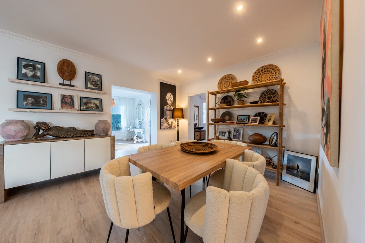A charming three-bedroom semi-detached home in Marbella East, this property blends relaxed Mediterranean living with a refined boho-chic interior aesthetic.