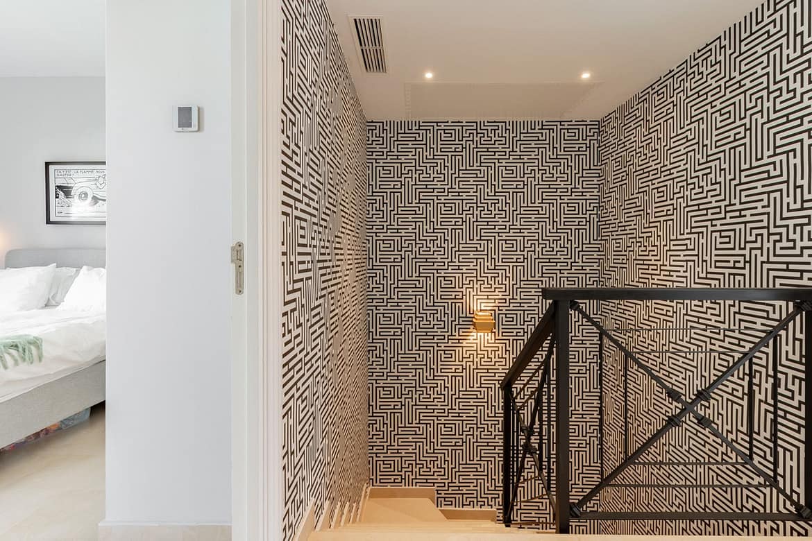 With a total of 163 square meters spread over two floors, plus an additional 49 square meters of terraces, this home features three spacious bedrooms, as well as a guest bathroom. The ground floor offers an open-plan design with a living and dining area, and a separate kitchen that flows into a private garden with a private pool and terrace, perfect for seamless indoor and outdoor living. On the upper floor, each bedroom opens to small terraces that offer stunning views. The highlight is the large rooftop terrace with a living area ideal for entertaining, set against the backdrop of breathtaking views.