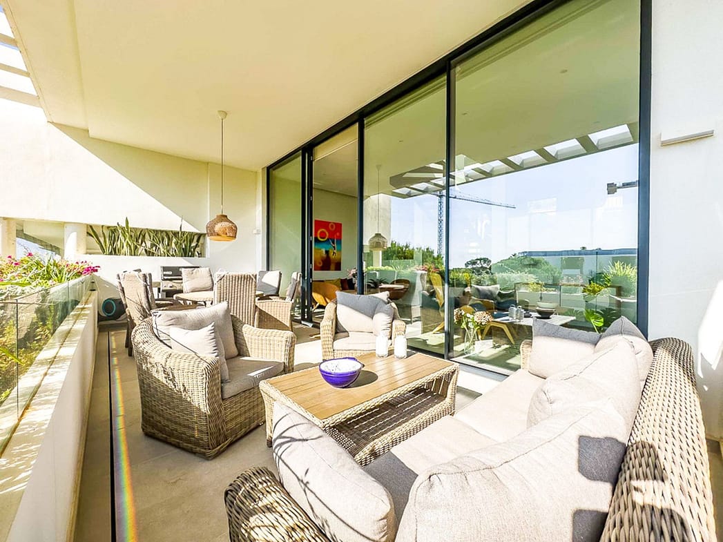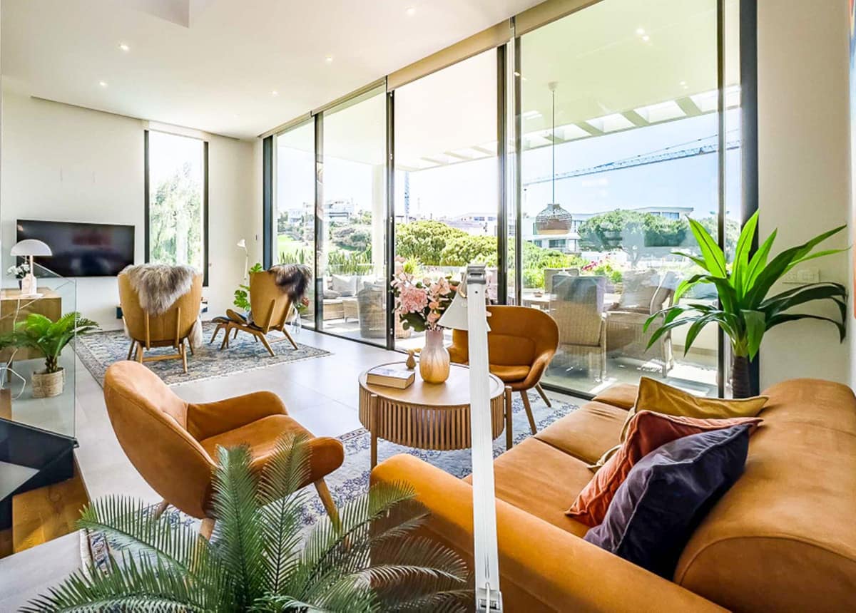This architect-designed semi-detached Villa is part of the prestigious urbanization The Cape in Cabopino, Marbella East. With a privileged frontline golf position and just 800 m from Cabopino Beach and Marina, the home combines tranquility, comfort, and modern Scandinavian-inspired design.