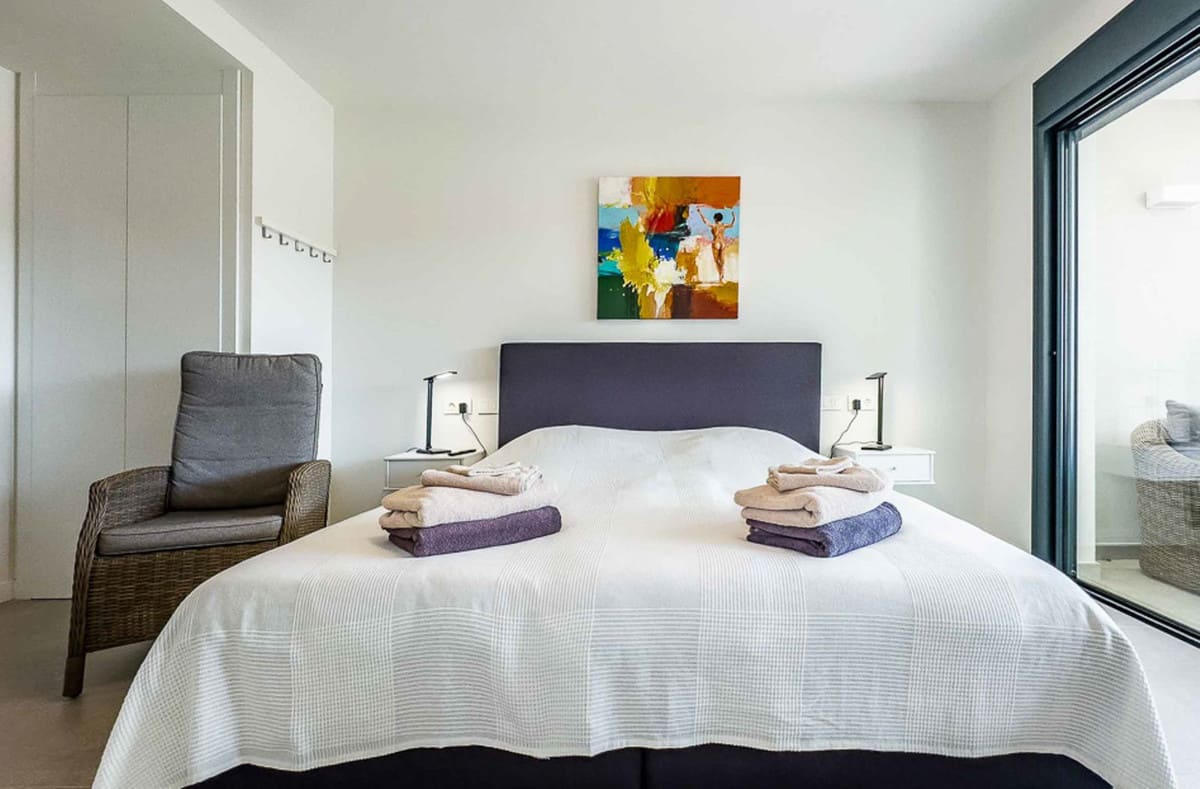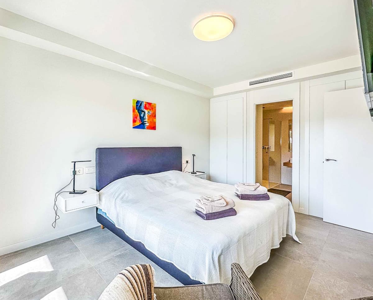 Spread over three levels and 181 m², the house offers bright spaces, floor-to-ceiling windows, and stunning views of the Mediterranean, golf course, and mountains. It features three spacious bedrooms with en suite bathrooms, a fully equipped kitchen, open-plan living and dining areas, private pool, and several terraces totaling 160 m² — including a rooftop solarium for unforgettable sunsets.