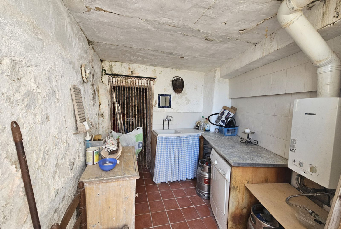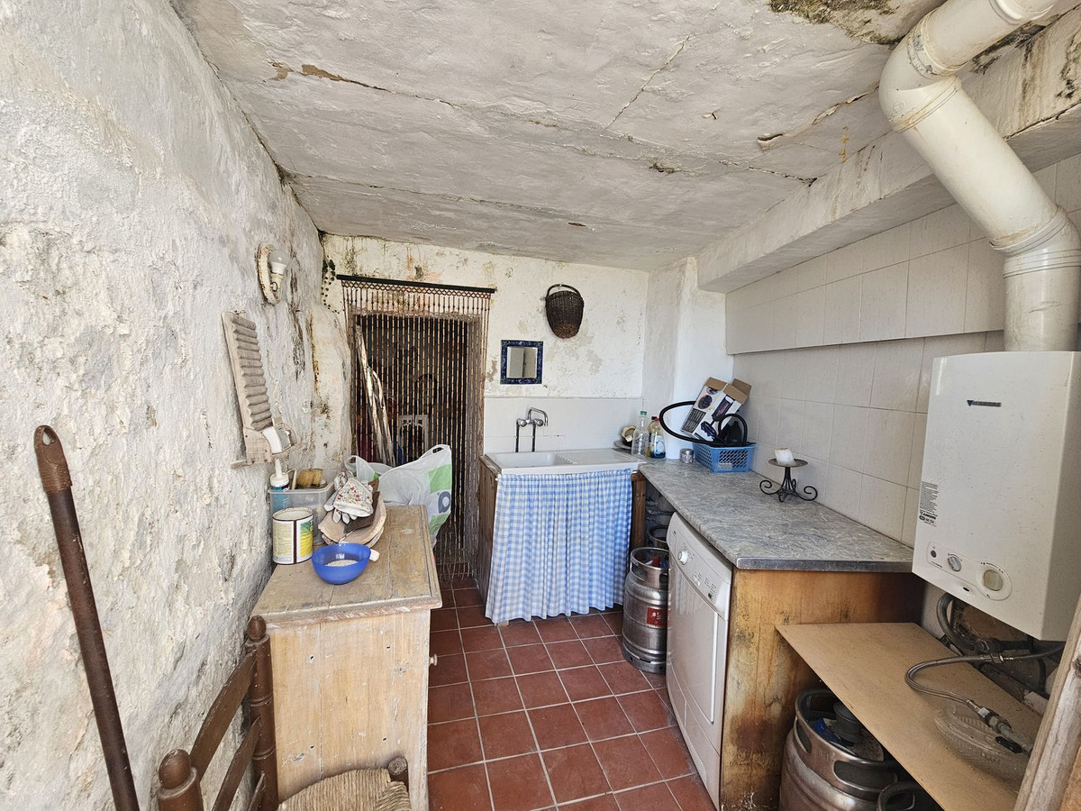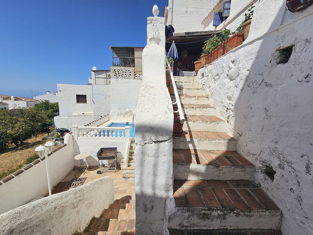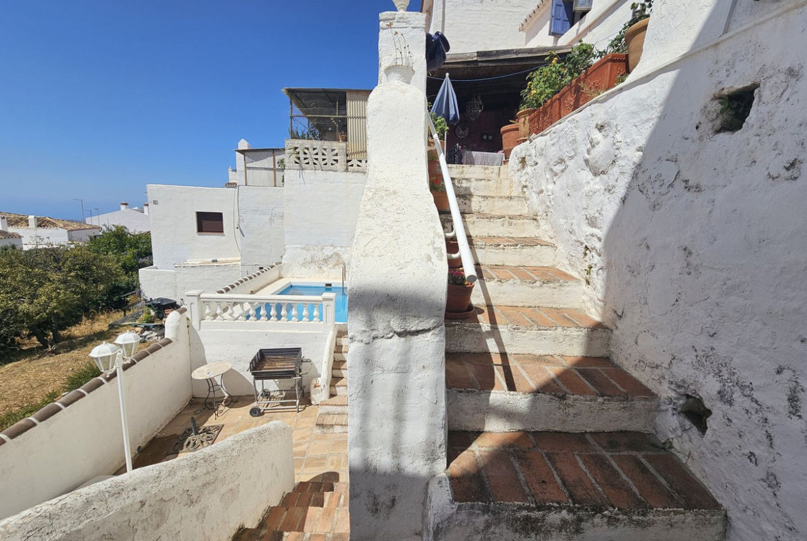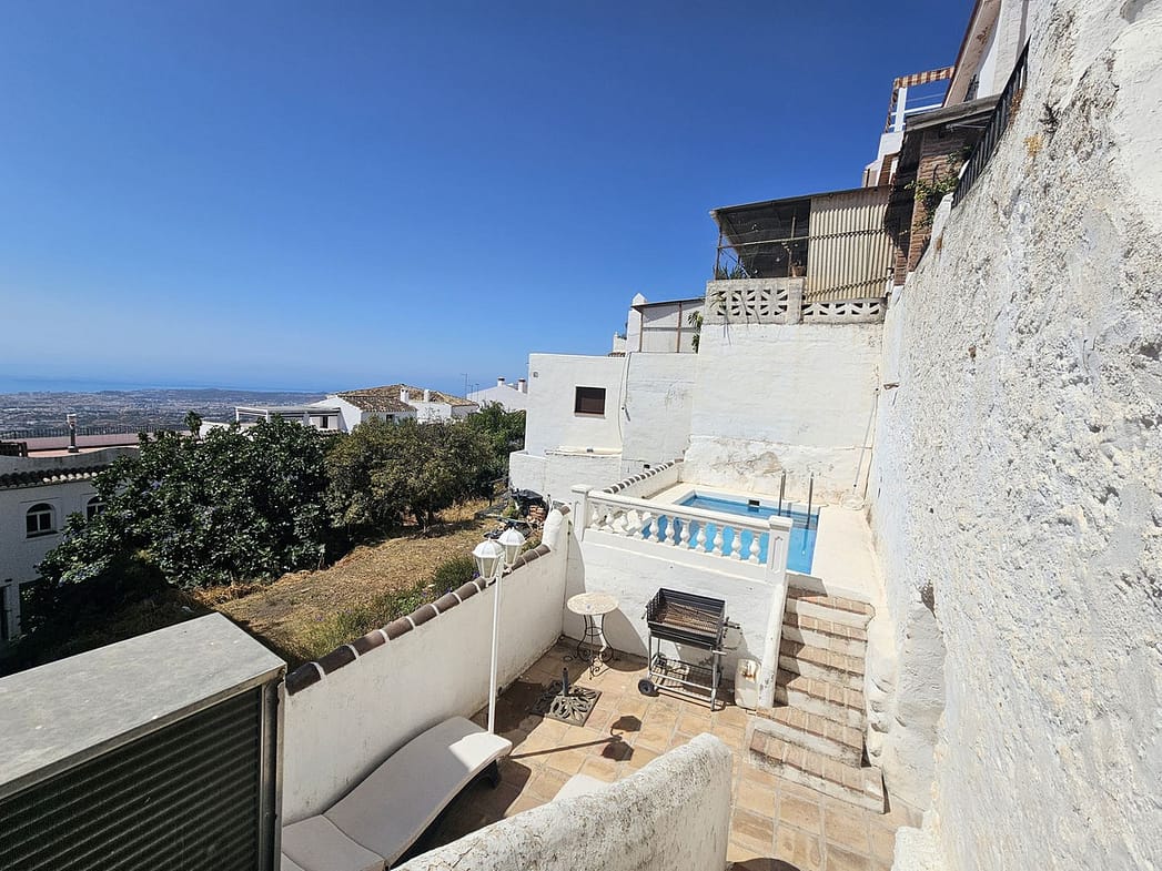 Direct private entrance from the street at the same level, living room, dining room, kitchen, terrace with spectacular views of the Mediterranean Sea, bathroom and access to the pool area, storage room, and typical Mijas caves.
