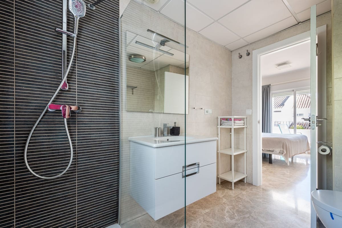 Built in 2015, the property is distributed over two floors and features 3 spacious bedrooms and 3 full bathrooms. The main floor stands out for its open-concept design, with a modern kitchen integrated into the living-dining area, creating a spacious and cozy atmosphere with direct access to the private garden—ideal for enjoying Marbella’s climate all year round. This floor also includes a full bathroom.