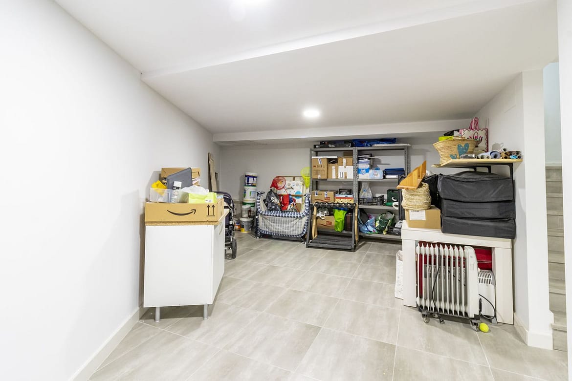 Spanning four levels across 336 m² of built space (250 m² usable) on a 112 m² plot, this south-facing gem—constructed in 2018 and impeccably maintained—boasts innovative design and premium features. The expansive 112 m² open-plan basement, reinforced with a hydrophobic concrete retaining wall for a bunker-like durability, provides versatile space for a gym, cinema, or storage. The ground floor offers 100 m² of elegant living, including a spacious lounge-diner, modern kitchen, a 12 m² private patio, guest cloakroom, and integrated garage. Ascend to the 100 m² first floor, featuring three generous bedrooms—one master with en-suite bathroom and walk-in dressing room—plus additional bathrooms for family comfort. The crowning 25 m² top floor opens to a stunning 70 m² terrace, complete with laundry area, compact kitchen, cloakroom, private swimming pool, solarium, and pergola—perfect for al fresco entertaining amid breathtaking views.