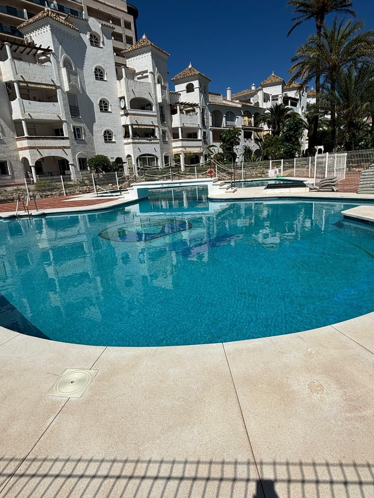 One of the most impressive things about this apartment is of course the opportunity to enjoy the fantastic view and the sun all day from the private terrace. When you want to cool off, you can either take the elevator down to the beautiful swimming pools one for children or stroll a few minutes down to the charming beach.
