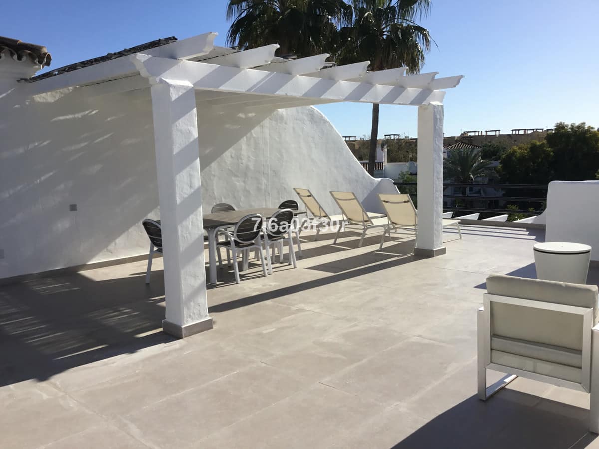 Lovely and bright 3 bedroom and 2 bathrooms top floor apartment, with nice solarium is located midway between San Pedro and Estepona with just 10 minutes drive to either Estepona and Marbella downtown. Walking distance to the beach ( 7 minutes) and several beach restaurants. Near to the "Villa Padierna del mar"