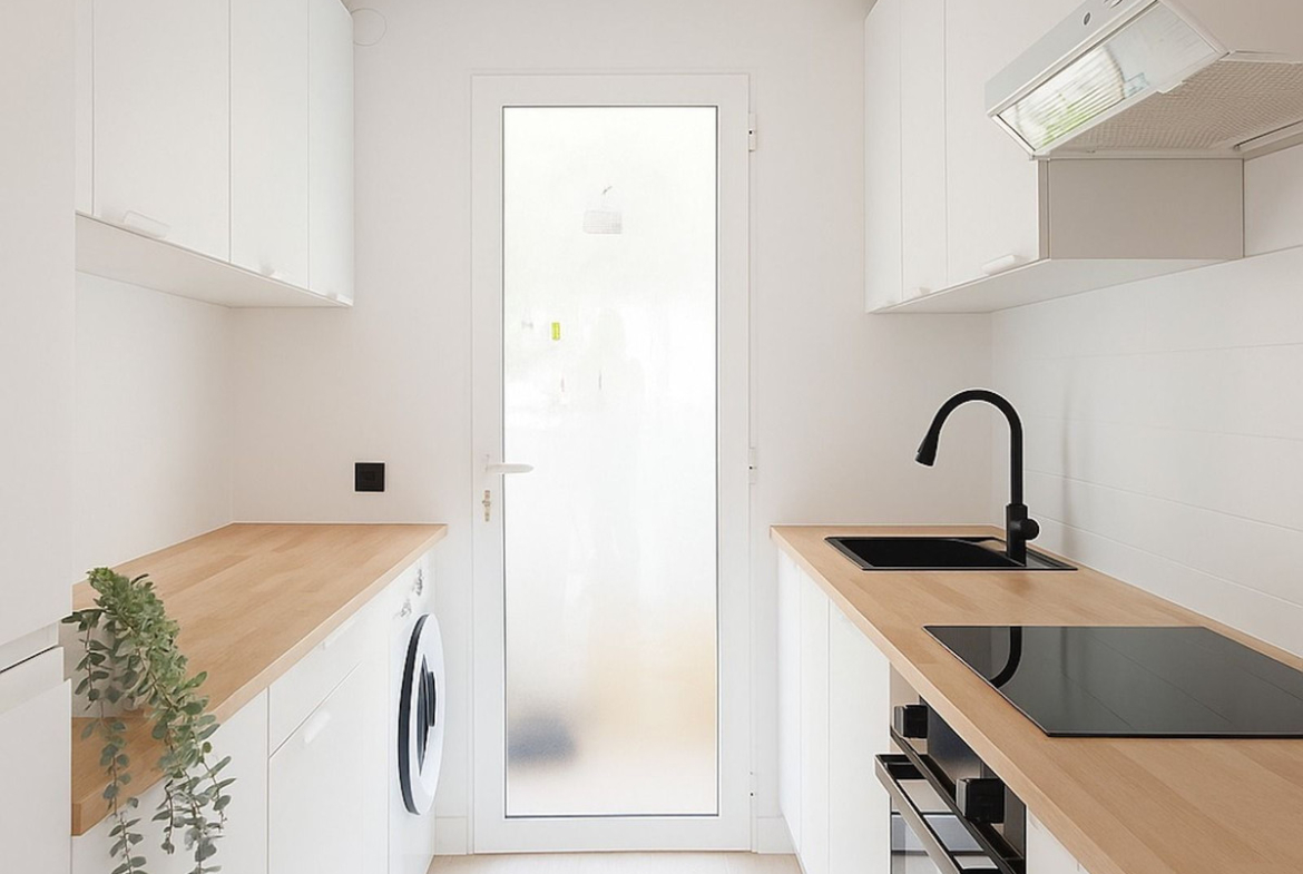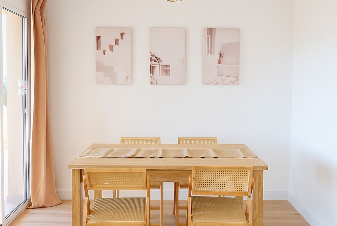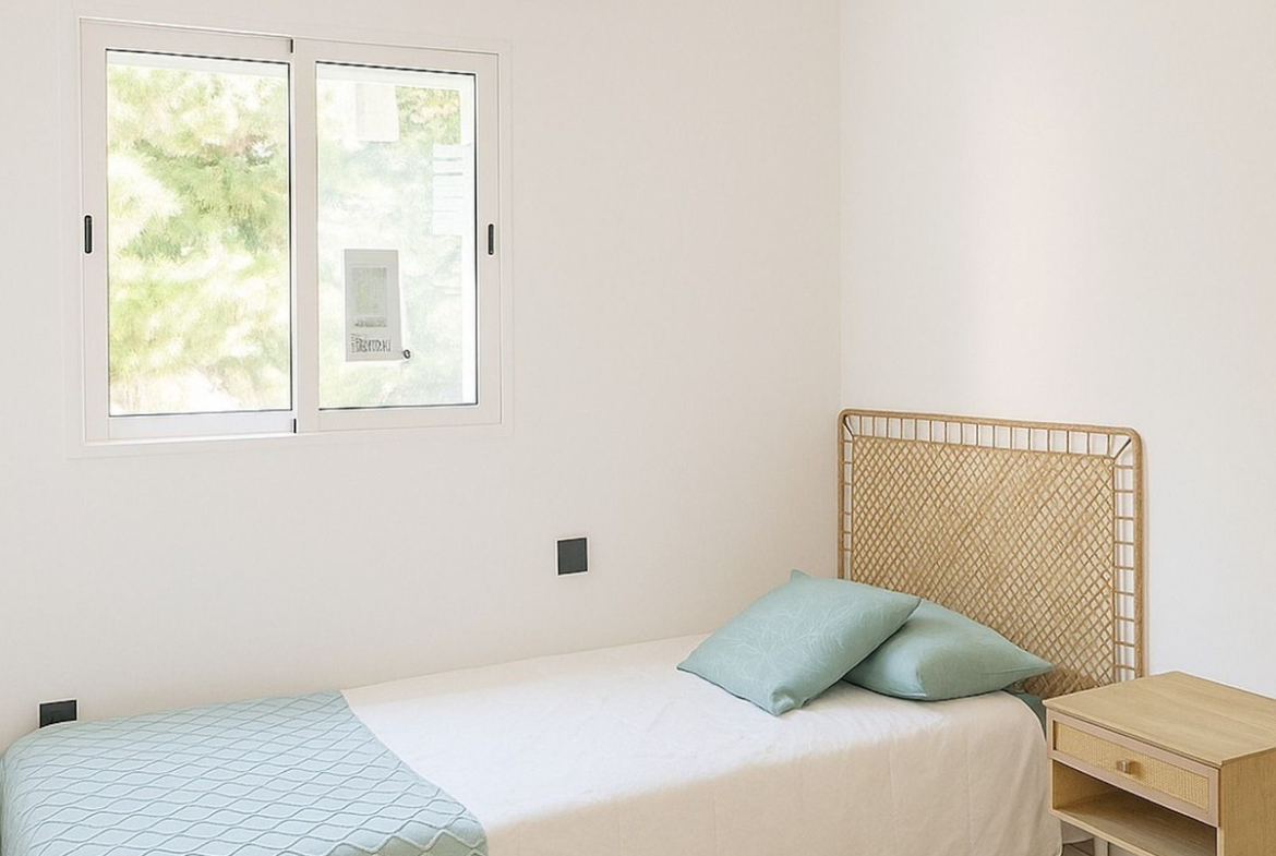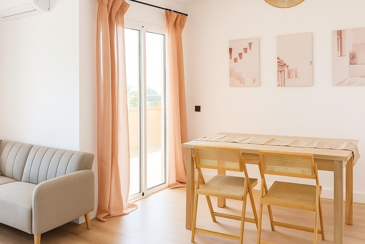 The apartment has been fully renovated with fresh finishes and tasteful décor and comes fully furnished, ready to move into. The bright open-plan living area connects to a 10 m² private terrace, perfect for enjoying the Mediterranean climate. The fully equipped kitchen includes modern appliances and ample storage, providing both style and functionality.