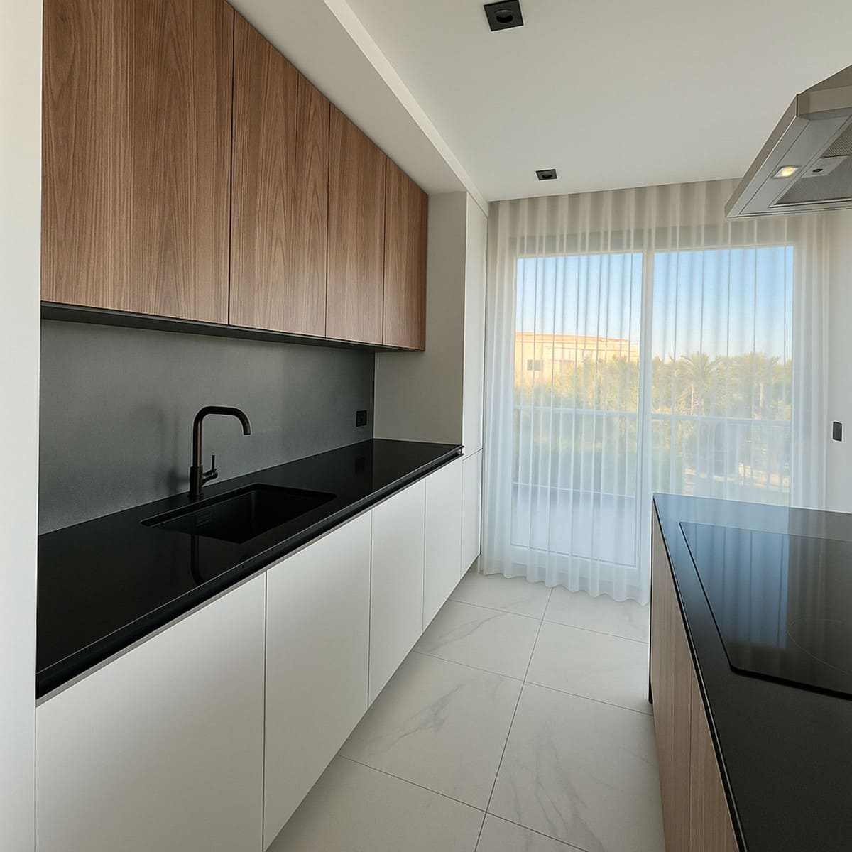 Thanks to its corner position and ideal orientation, the apartment is filled with natural light, creating a bright, airy, and welcoming living space. The home features a modern contemporary design with high-quality finishes throughout. The kitchen is fully fitted with premium cabinetry and high-end Siemens appliances, complemented by quality fittings and elegant details.