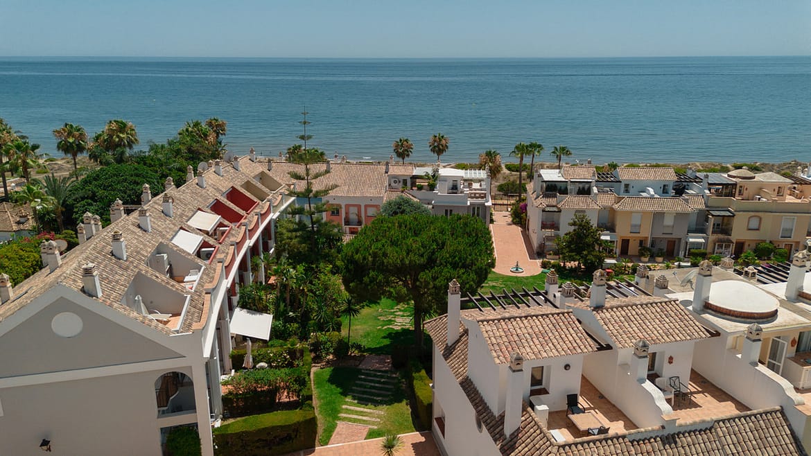Located in the exclusive Bahia de Marbella, we find a 215 m2 detached house with stunning views of the Alboran Sea and the mountains, on the first line of Los Monteros beach.