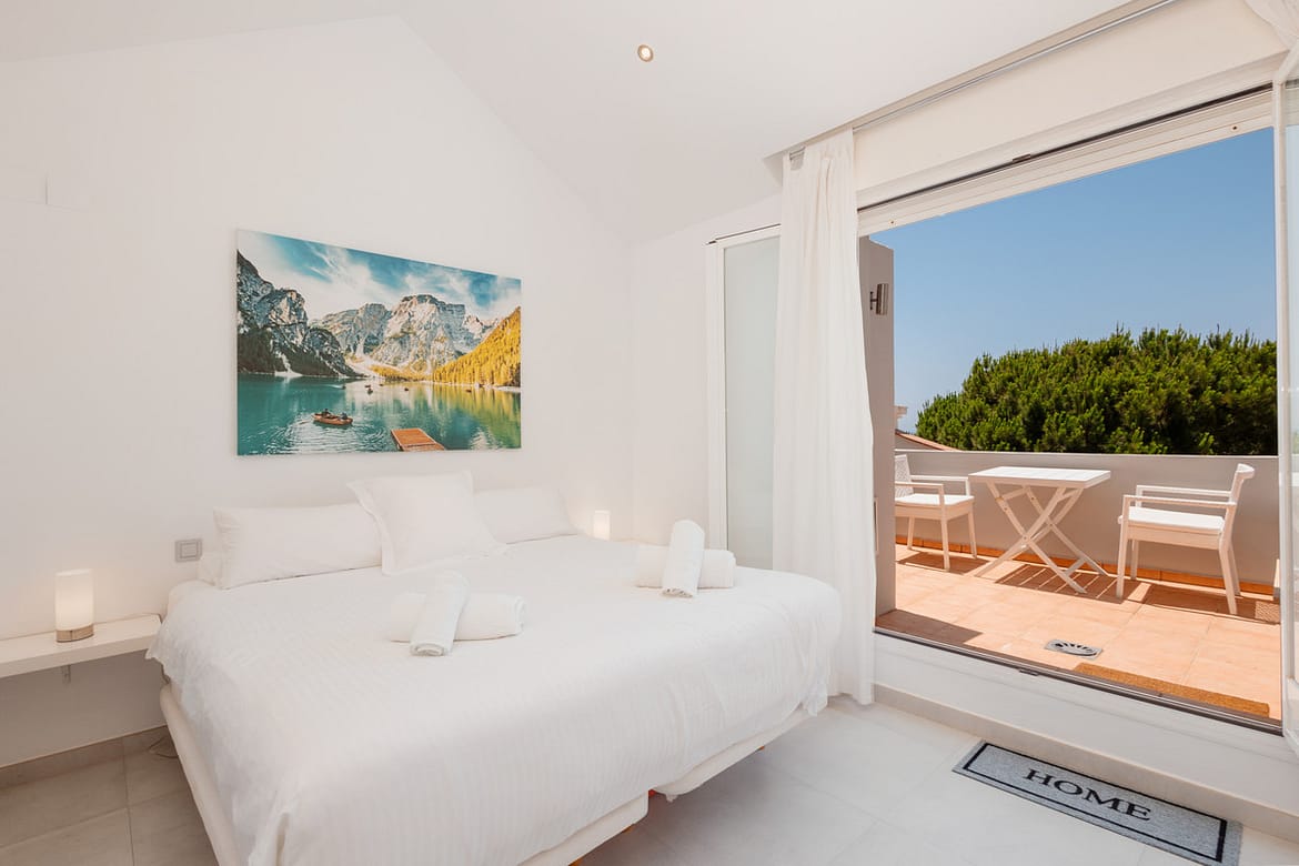 The upper level houses a third bedroom with en-suite bathroom and a double bed. But its main attraction is undoubtedly a private terrace offering unparalleled views of the sea, perfect for relaxing on the sofa or at the table with chairs.