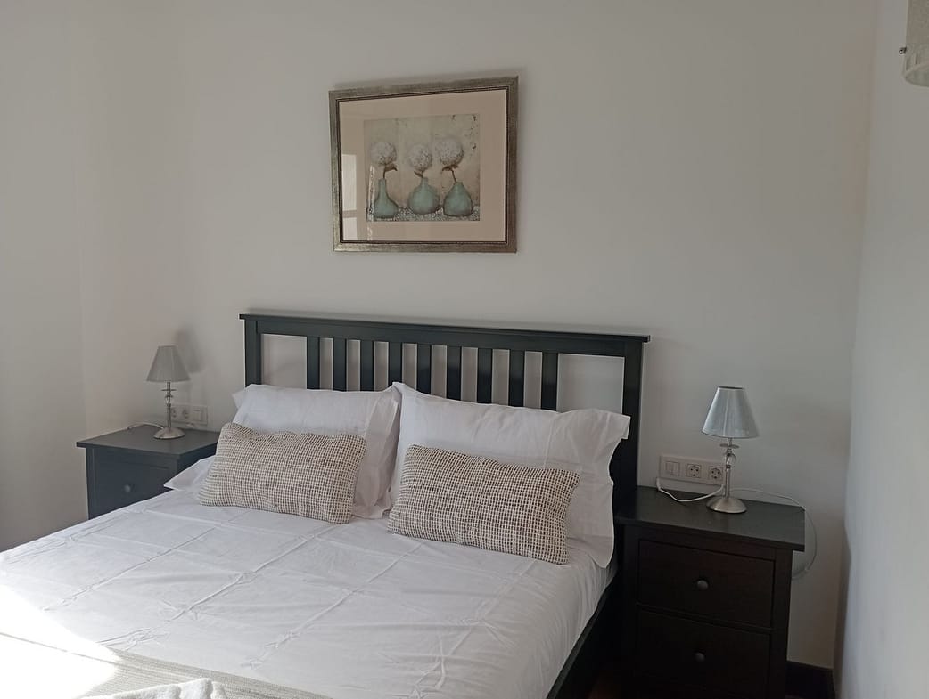 This is a traditional Spanish-style townhouse spread over 3 floors. There is a shady terrace at the entrance perfect for your morning coffee. The main level has a fully-equipped kitchen, guest toilet, and an open-plan lounge/diner with access to the sunny terrace. Relax, enjoy the view, and dine al fresco! On the upper level are 3 large bedrooms all with ensuite bathrooms. The laundry room is located at the basement level. Parking is free and right outside the house in the street. No smoking. No pets.