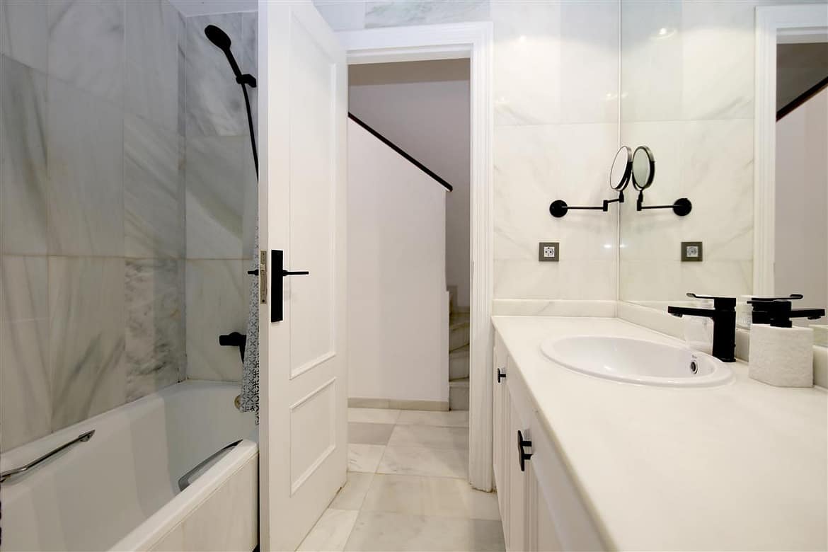 The Belgravia Club is located just a few minutes’ walk from the entrance to the port of Estepona, with its bars, cafes, restaurants and supermarkets. Just outside the gated community there is a bus stop and you’ll find a taxi rank just a few minutes’ more away. The location of the family house makes it ideal for exploring Andalucia as it is possible for day trips to the famous cities of Granada (and the Alhambra Palace), Seville, and Cordoba. Gibraltar is also just 35 minutes drive away (don’t forget your passports!). This property is located very close to the beaches of Playa del Cristo and Playa la Rada – in fact there is access to the parking area of Playa del Cristo directly from the gardens of the urbanisation. A walk to the centre of the old town, with its quaint squares and flower lined streets, would take about 17-20 minutes – head to the heart of the town “Plaza de las Flores” with its cafes and ice cream parlours!
