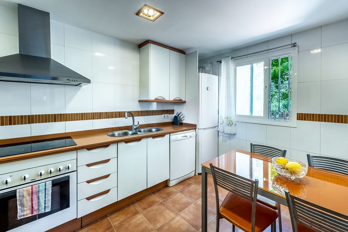 The property comprises of a large, open plan dining and living room leading to a south / west facing, bright and warm, generous sized dining and sunbathing terrace. Off the dining and living room, there is a good-sized dining kitchen, plus separate storage under the stairway and a downstairs bathroom.