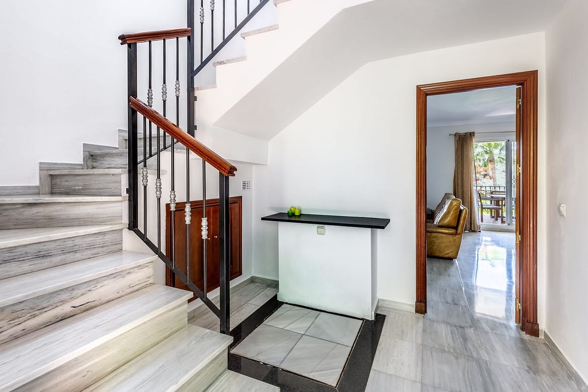 On the upper floor there are three large bedrooms, one with ensuite and a separate family bathroom. The primary bedroom enjoys a terrace with mountain views and an ensuite bathroom. The second bedroom also has a sun terrace. All three bedrooms enjoy nice views, and each has extensive wardrobe and storage space.