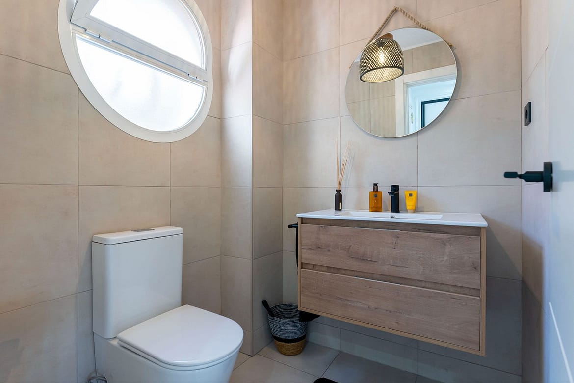 Upper floor: Three double bedrooms with built-in wardrobes, including the master bedroom with en-suite bathroom. The two additional bedrooms share access to a sunny terrace, and there is also a modern family bathroom.