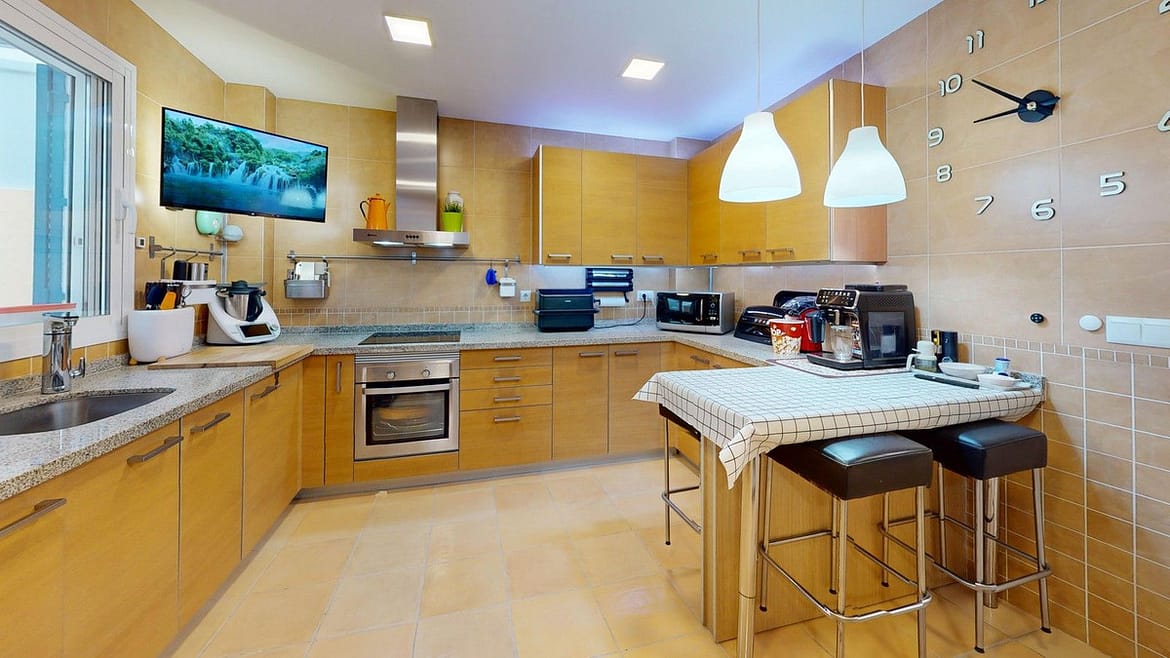 -Kitchen with thermal tap, osmosis system and top of the range electrical appliances (optional).