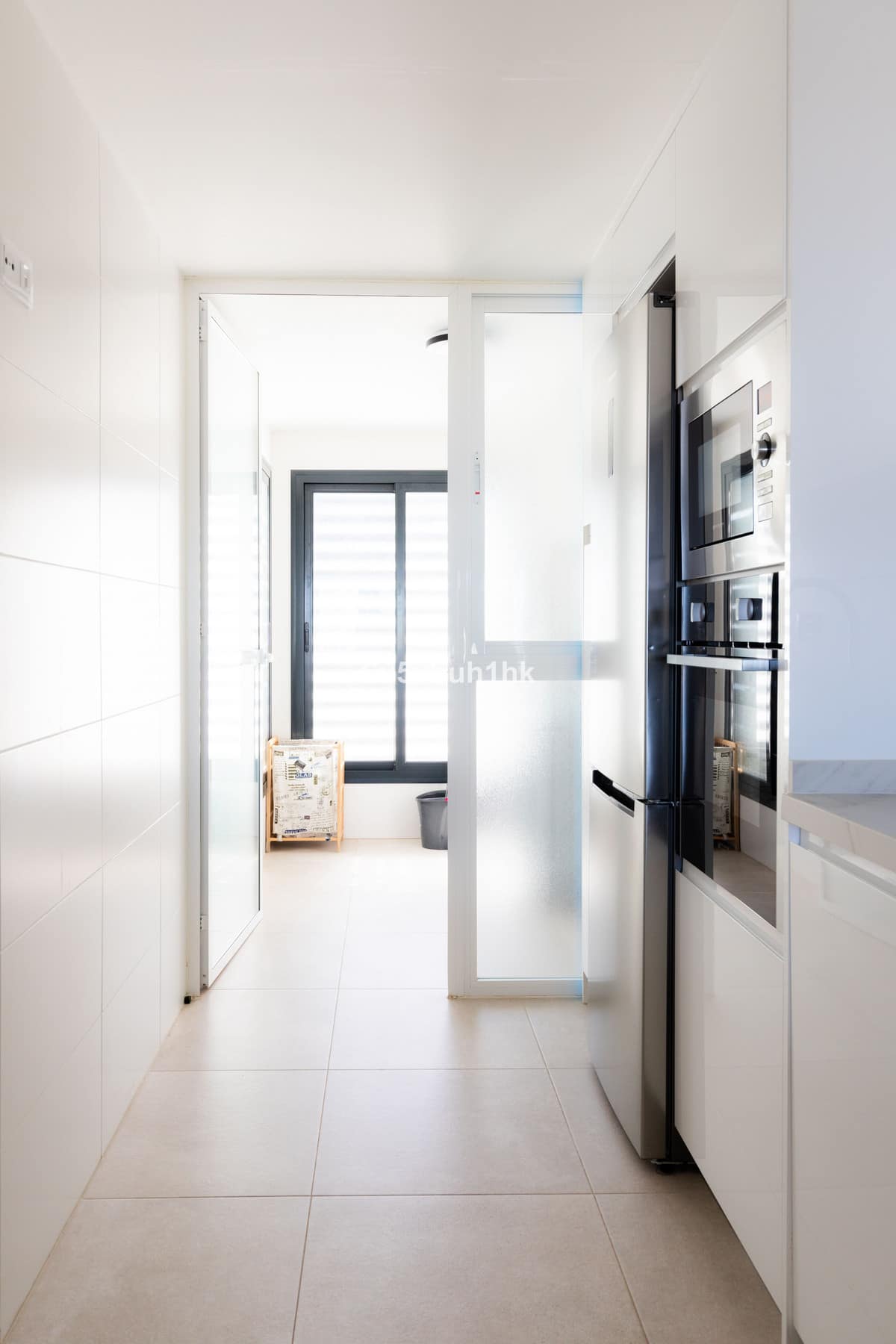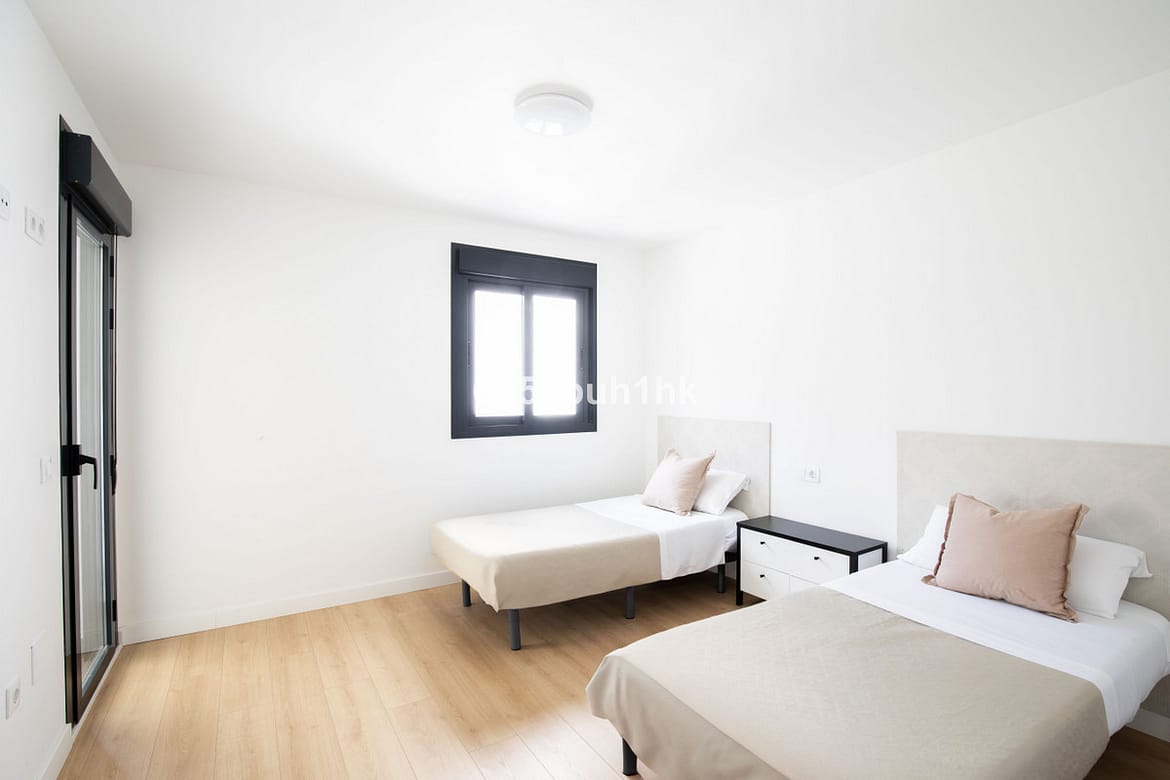 This bright and cozy 3-bedroom townhouse is located on a peaceful cul-de-sac, just a short walk from the beach. Amenities and the famous Avenida de las Palmeras with its lovely restaurants are less than a 10-minute walk away. The large front patio offers plenty of space for an outdoor dining set or a lounge area. On the entrance floor you’ll find a stylish open-plan kitchen that connects to a spacious living room with access to a sunny balcony. Behind the kitchen there is a large and practical utility and laundry room. A guest toilet is also on this level. Upstairs, there are two bedrooms: one with a bathroom in the hallway and the other with an en-suite bathroom and private balconies on both sides. On the top floor, a stunning rooftop terrace awaits, offering sea views and endless possibilities for design and enjoyment. The property also includes a separate studio apartment on the lower level with its own entrance through the patio. The studio has an open kitchen, a large living/sleeping area and a spacious bathroom. It can be easily connected to the main house, or used independently for rental income, making it a perfect investment. This versatile home is ideal as a holiday retreat, an investment opportunity, or a permanent family residence.