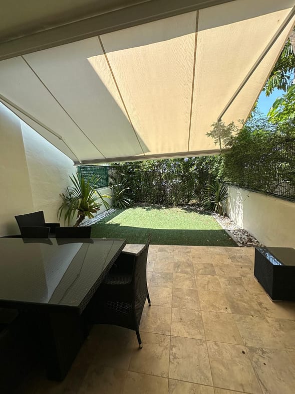This turnkey ready & fully furnished, townhouse with spacios interiours offers 3 generously-sized bedrooms and 2 contemporary bathrooms, plus a convenient guest toilet. Large windows fill the living area with natural light. The fully fitted kitchen flows seamlessly into the lounge. Enjoy the private garden, and covered terrace with suncreen for al fresco meals. The rooftop solarium offers great potential.