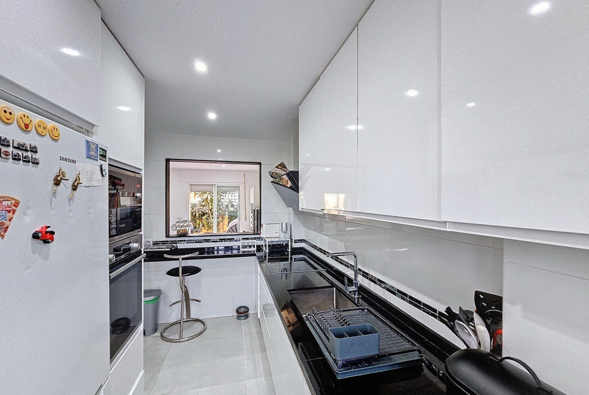 The property is equipped with solar panels, which contribute to significant savings and energy efficiency. The house also features air conditioning, porcelain floors, and a reinforced door for added security. The community, with mature gardens and a well-maintained pool, offers a tranquil and pleasant environment. Parking is available both within the community, in front of the house, and on the street. Its strategic location allows you to enjoy the tranquility of the area without sacrificing proximity to the beach, shops, and the center of Estepona.