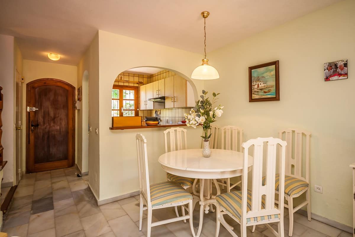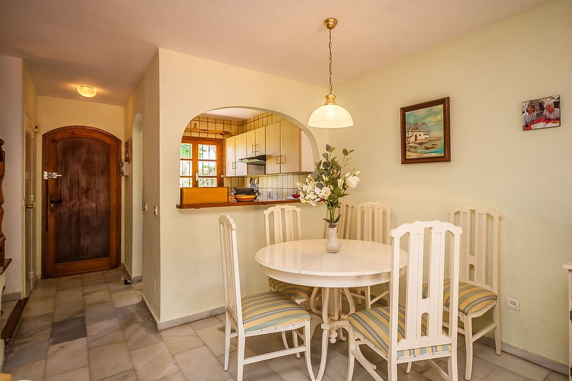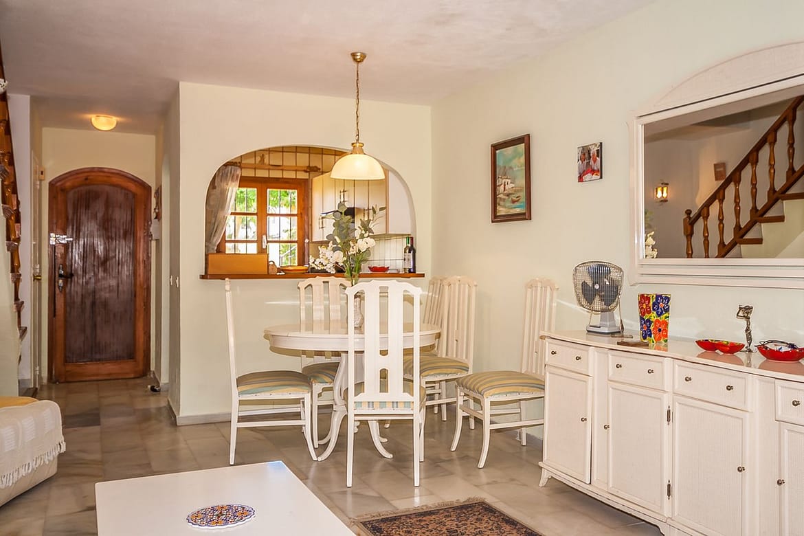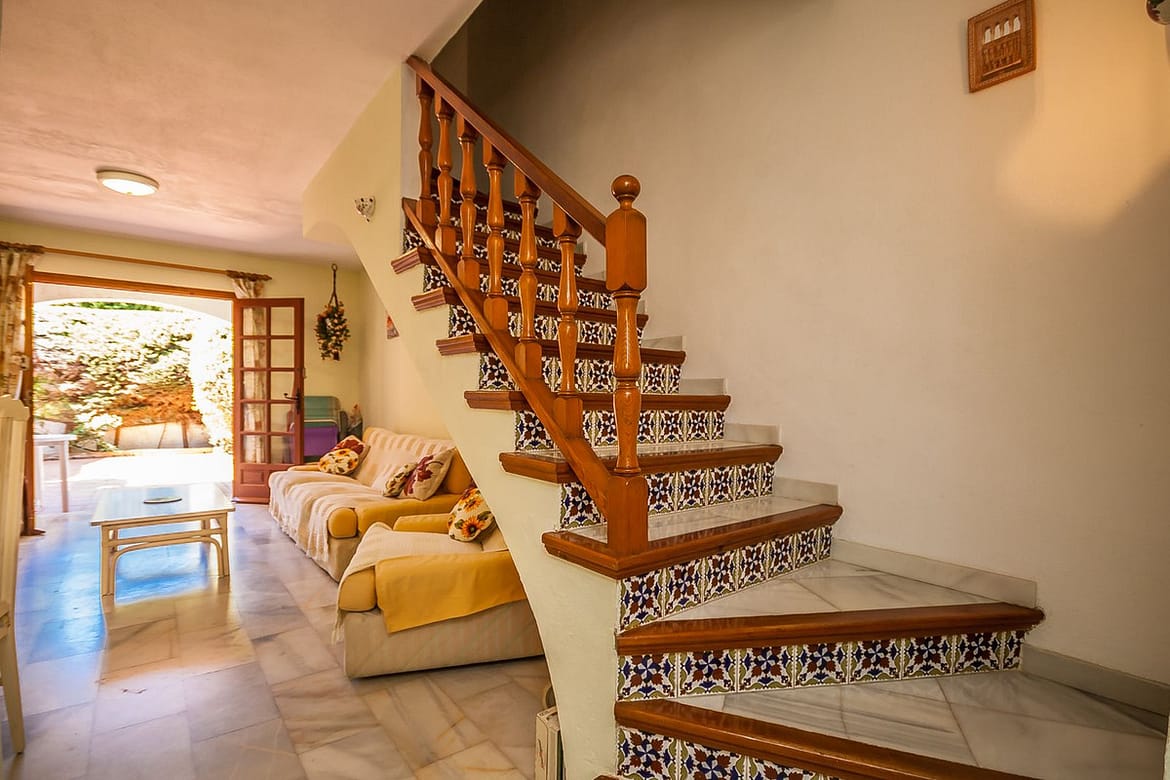 Lovely townhouse full of character in the heart of Elviria. Located just a 5-minute walk from the Elviria shopping center and a mere 10 minutes to the beach, this gated complex is perfect for families and golf enthusiasts alike. This charming 3-bedroom, 1-bathroom property spans 87 m² and offers a perfect blend of comfort and convenience. Enjoy a south-west orientation that fills your home with natural light, and take advantage of the communal pool and beautifully landscaped gardens. The ground floor features a fitted kitchen, a spacious lounge/dining area, and a sunny terrace ideal for relaxation. Upstairs, you’ll find three well-appointed bedrooms and a bathroom. Don’t miss the opportunity to make this delightful townhouse your new home!