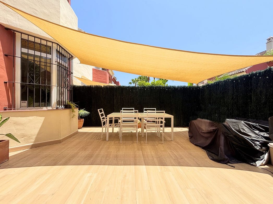 Located in a peaceful residential development in Estepona, just a few minutes' drive from all amenities, shops, and schools, this bright south-facing townhouse is spread over three comfortable levels — perfect for families or as a second home on the Costa del Sol.The basement level features a spacious 53 m² private garage, ideal for both vehicles and storage.The main floor offers a guest toilet, an independent kitchen, and a cozy living-dining room with direct access to a pleasant terrace, which in turn provides easy access to the communal areas and swimming pool — perfect for enjoying the Mediterranean climate.Upstairs, there are three naturally bright bedrooms and a full bathroom; the master bedroom also includes a small private terrace.The community is well-maintained and quiet, with a swimming pool and green areas, all with low maintenance costs.An excellent investment opportunity, whether for year-round living or as a high-yield rental during the peak season.Don’t hesitate to come and visit!