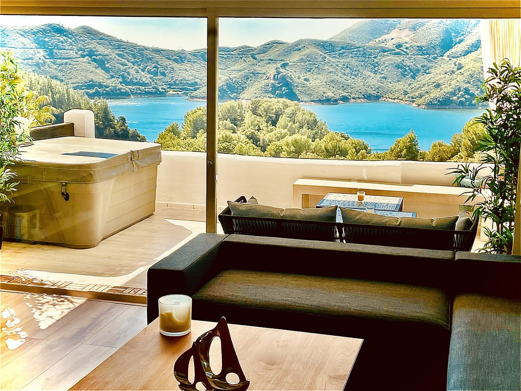 Located in the exclusive, gated Zahara de Istán community, just a few minutes from Marbella, this semi-detached home is a true luxury on the Andalusian coast. From the moment you enter the community, the tranquility and privacy offered by this enclave are immediately apparent. The home, which stands out for its unparalleled views of the lake and surrounding mountains, opens to a spacious and bright living room, an ideal space to enjoy the natural surroundings. The kitchen, open to the living room, is fully equipped and complemented by a fireplace that heats the entire floor, creating a very cozy atmosphere. On this level, there is also an elegant dining room, a bathroom, and a magnificent terrace, from which you can enjoy unforgettable sunsets. The terrace features a jacuzzi and a comfortable seating area, perfect for relaxing outdoors.