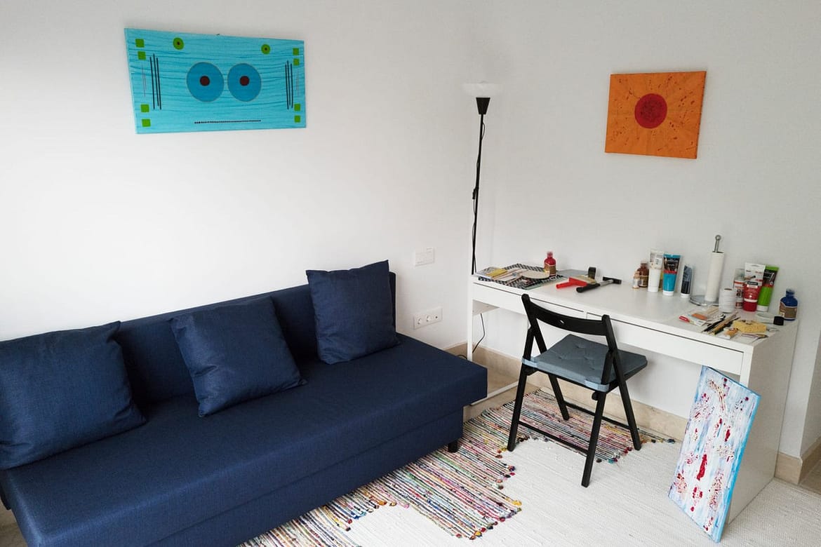 Down the second staircase you reach the 3 bedrooms and 2 bathrooms, 1 bedroom is en suite. By opening the sliding doors you are coming into the garden.