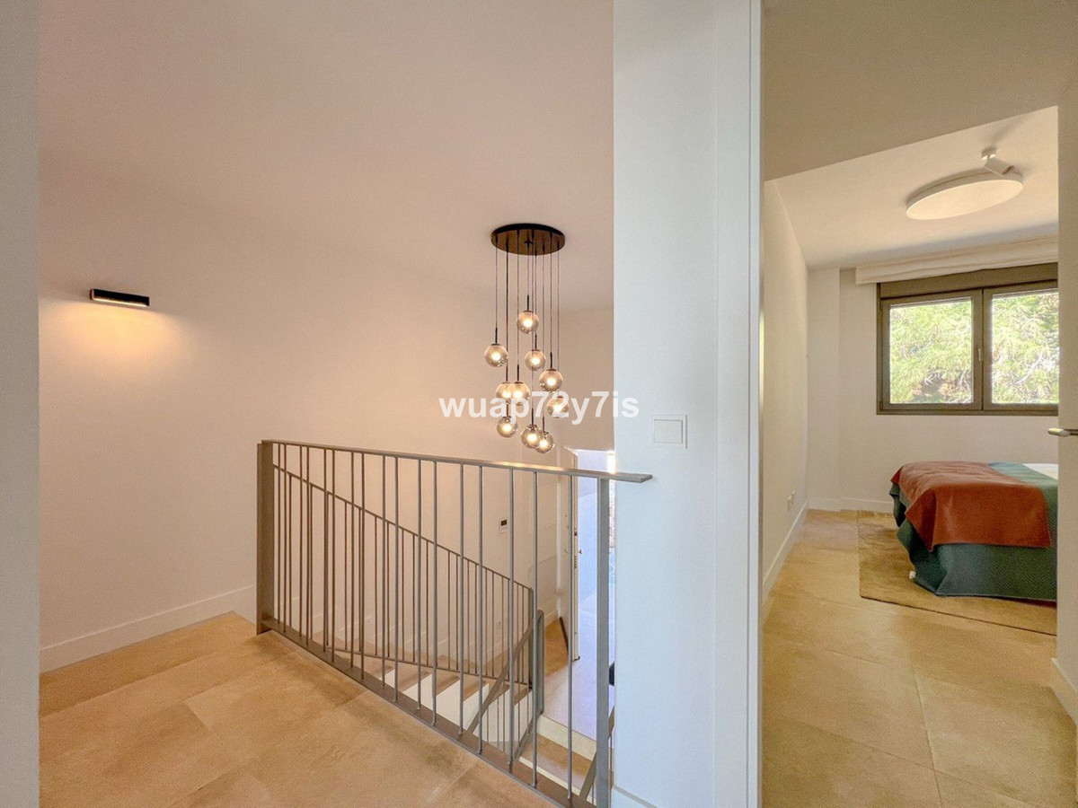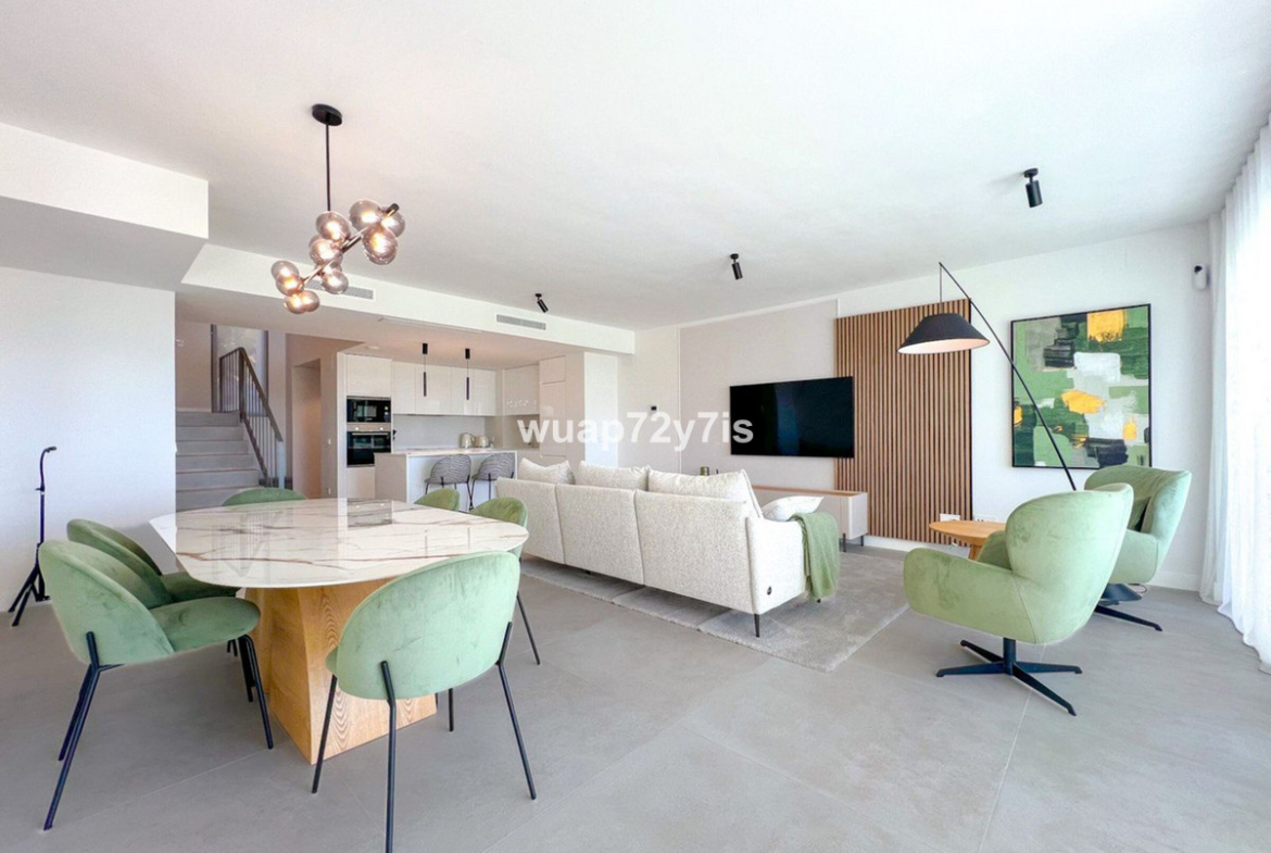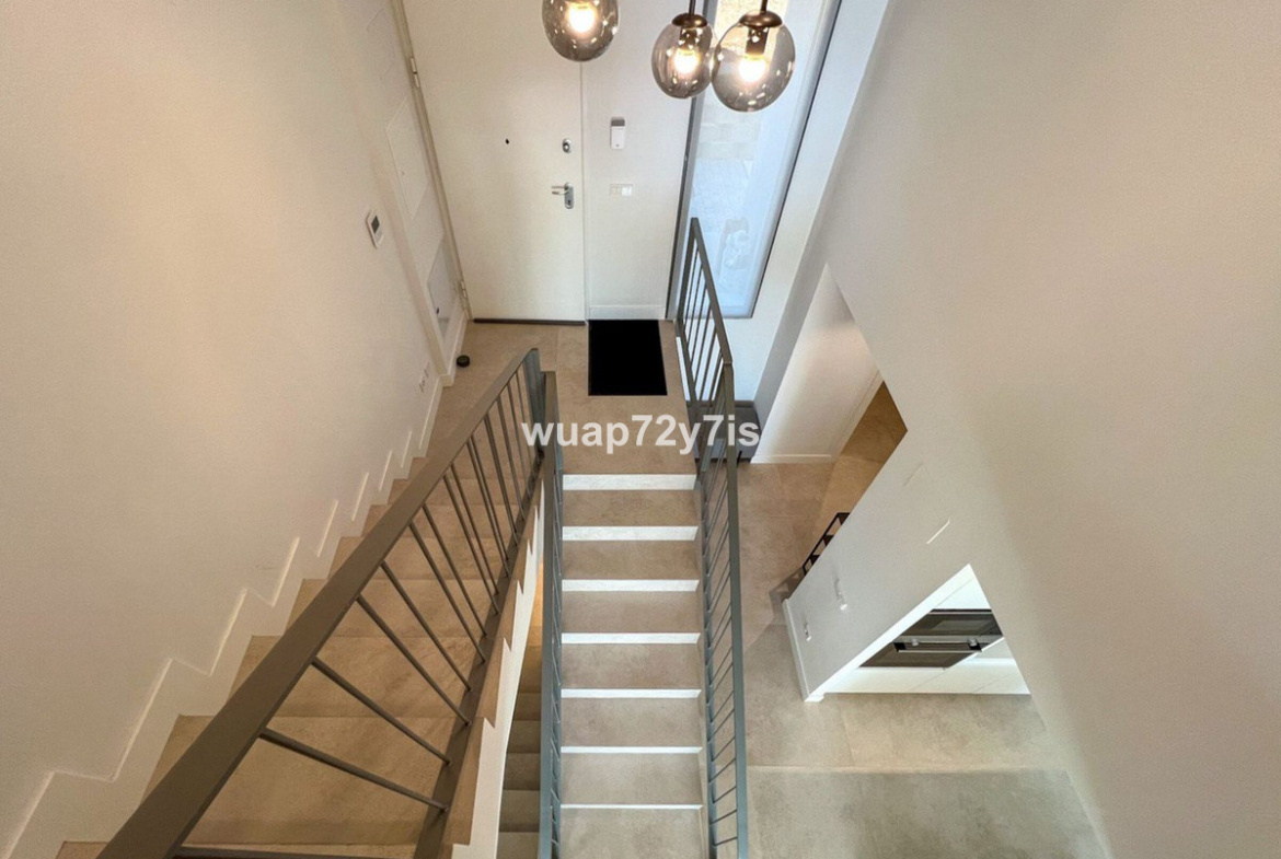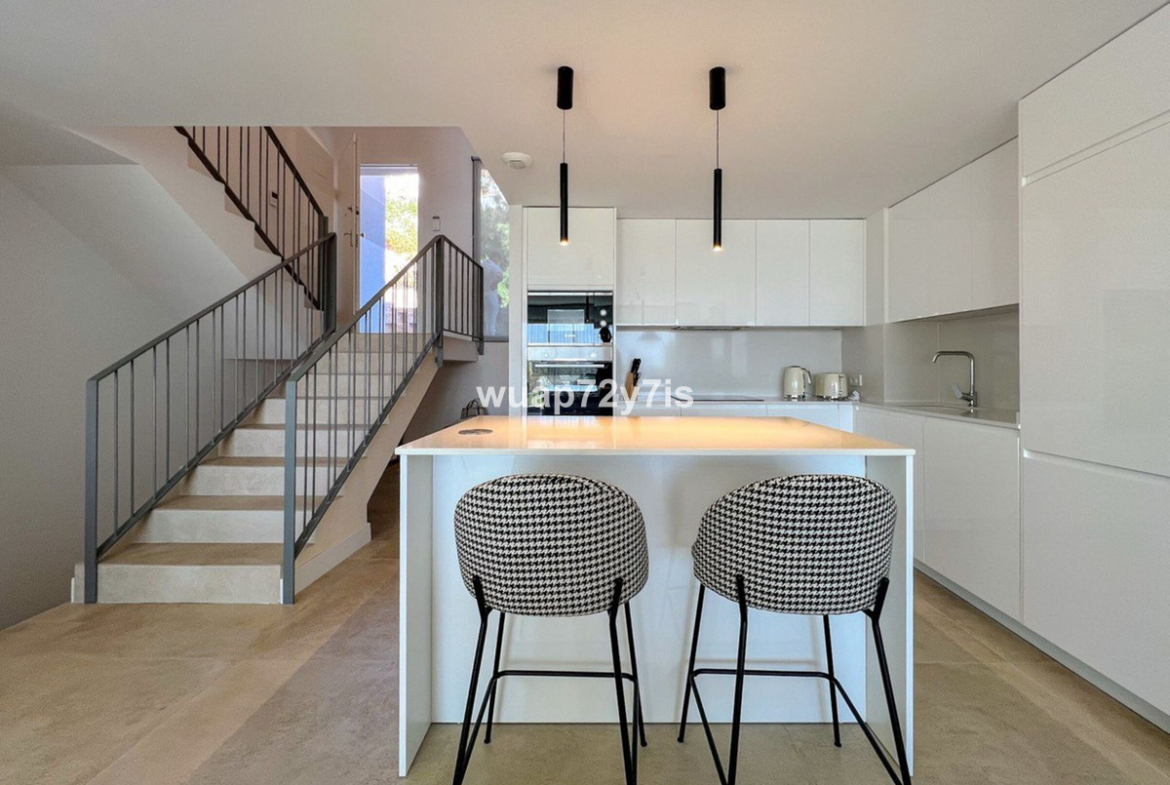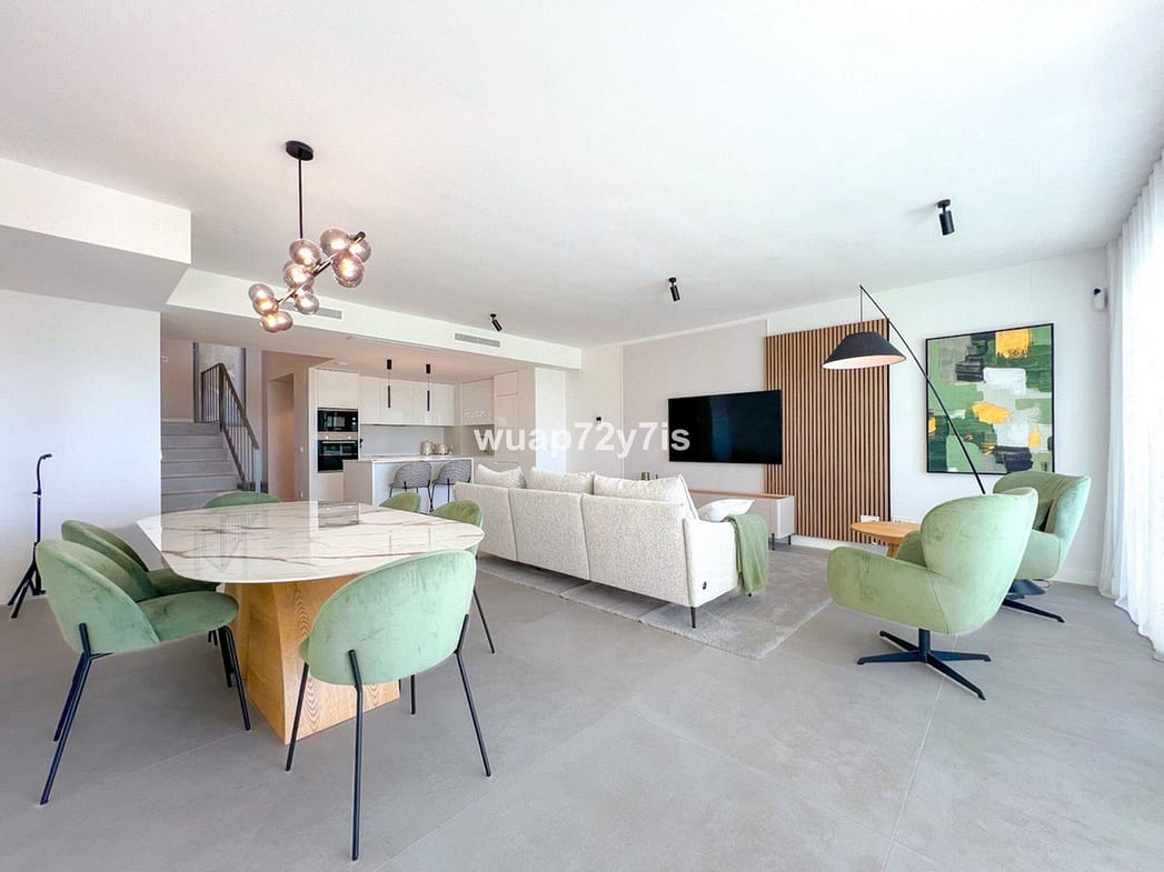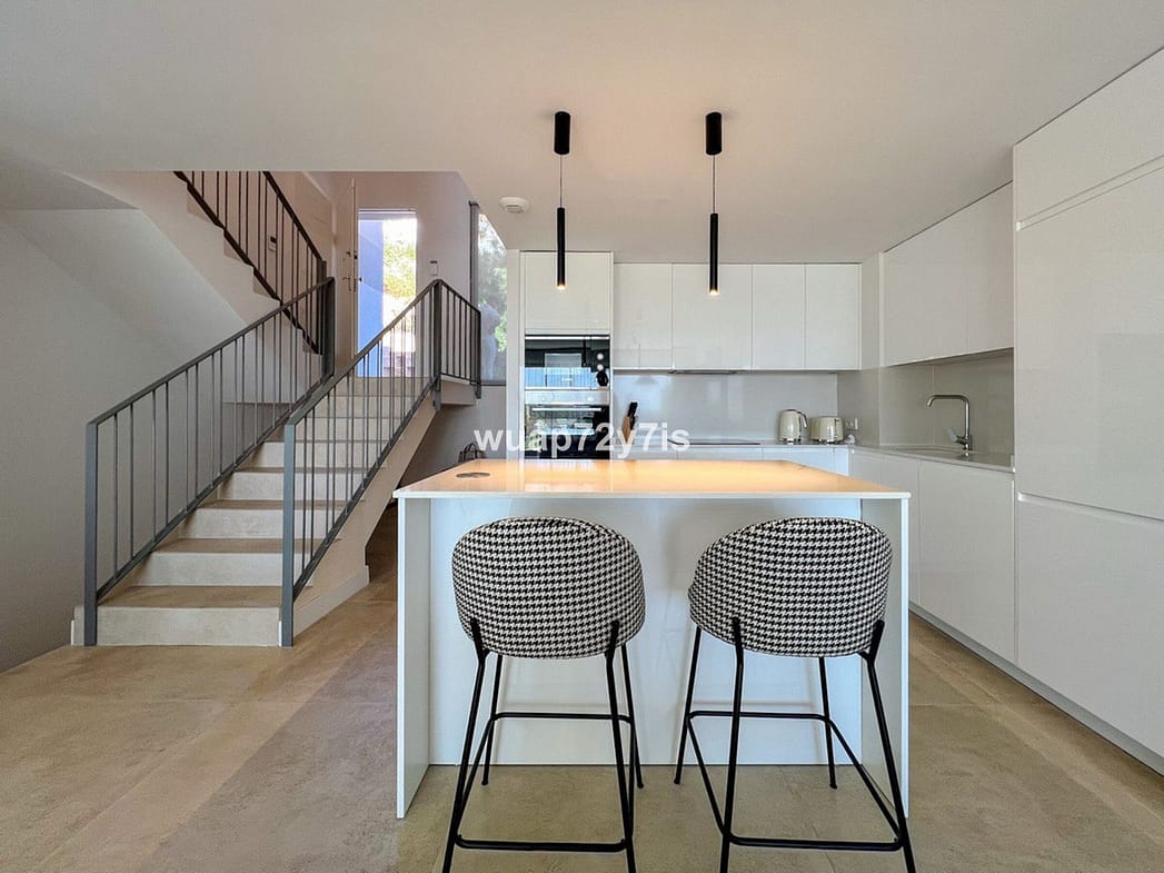 When you enter this charming townhouse, a staircase leads you directly to the spacious living room, which opens into a fully equipped kitchen. From there, sliding doors open to a sunny terrace with a private garden—an ideal place to relax, sunbathe, or entertain guests. Enjoy a breathtaking panoramic view of the sea and surrounding mountains, while a dedicated barbecue area makes outdoor meals especially pleasant. On the same floor, you'll also find guest toilets and a laundry room.