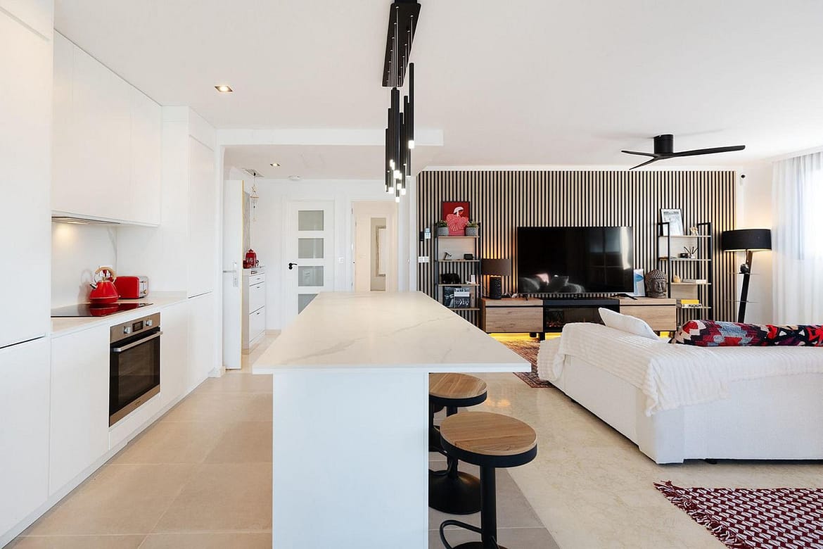 This spectacular renovated house, with its elegant contemporary style, offers a total of three bedrooms with three bathrooms, plus an office area, and a large living room of over 50m2 with an integrated kitchen.