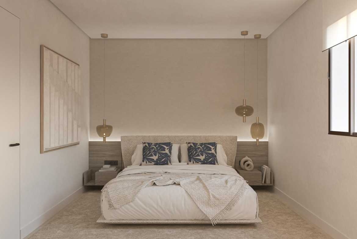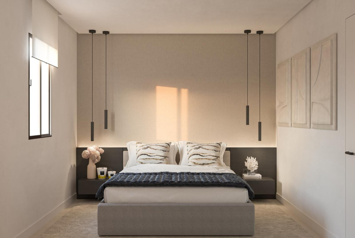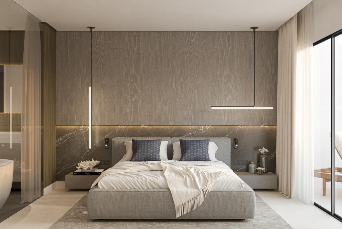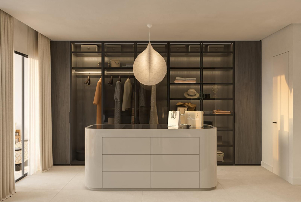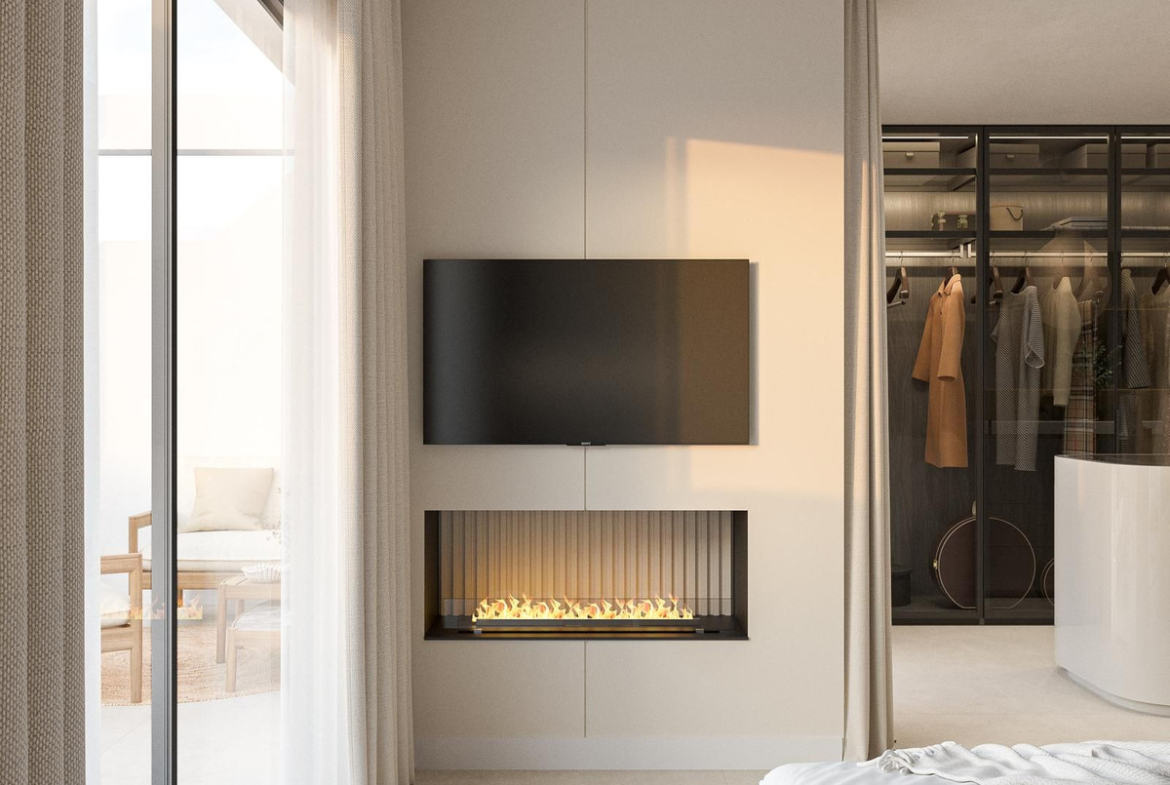 This property is been designed with the owner in mind, originally a four-bedroom property has now been made into a three-bedroom by opening up two bedrooms into one, resulting in one of the most awe-inspiring master bedrooms. With a 15 square meter custom made open wardrobe area, state of the art Porcelanosa bathroom suite, media TV wall with fire place, sea views of Africa from the bed, and a beautifully furnished full width private terrace. A further two double bedrooms and bathroom complete the first floor.