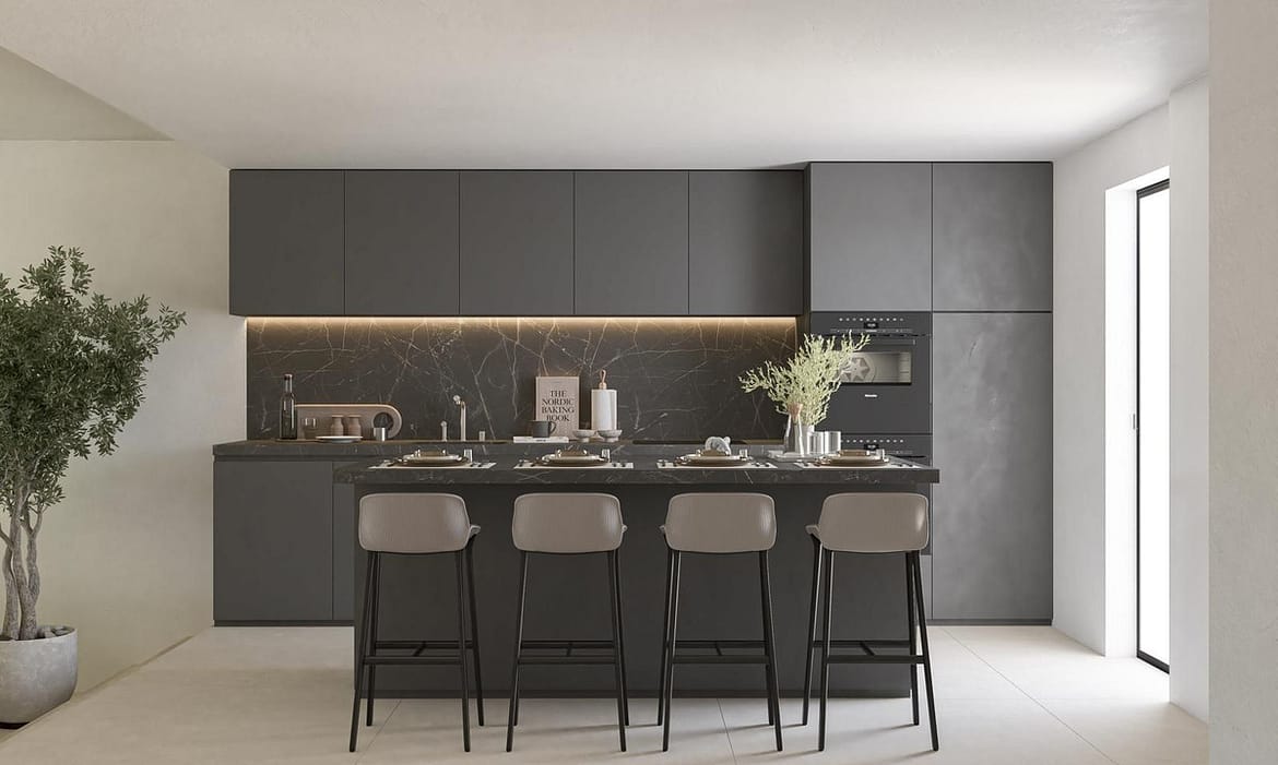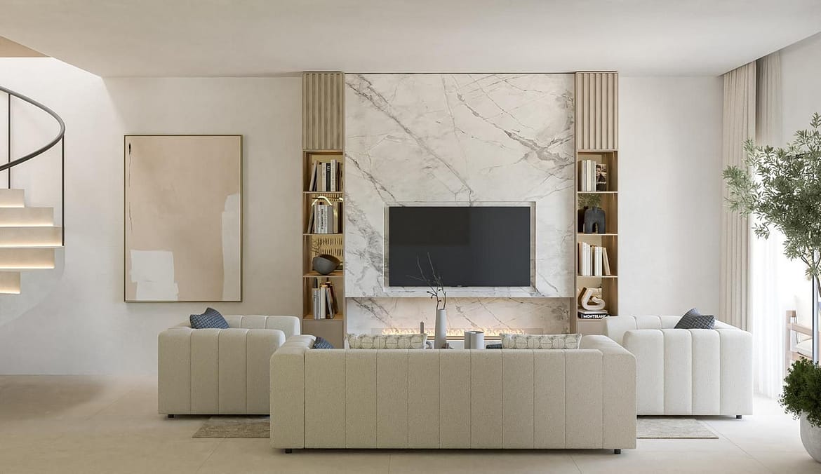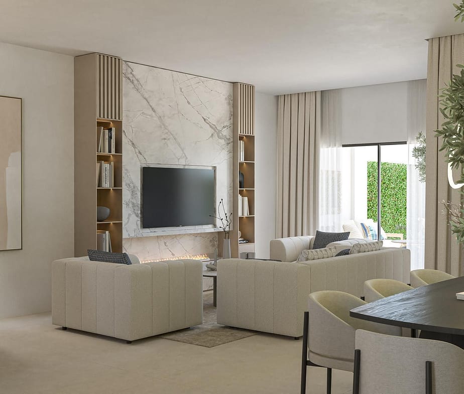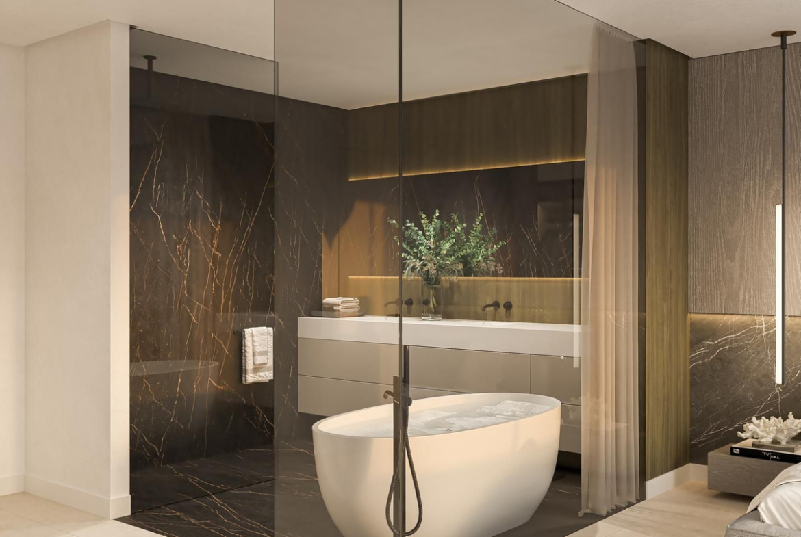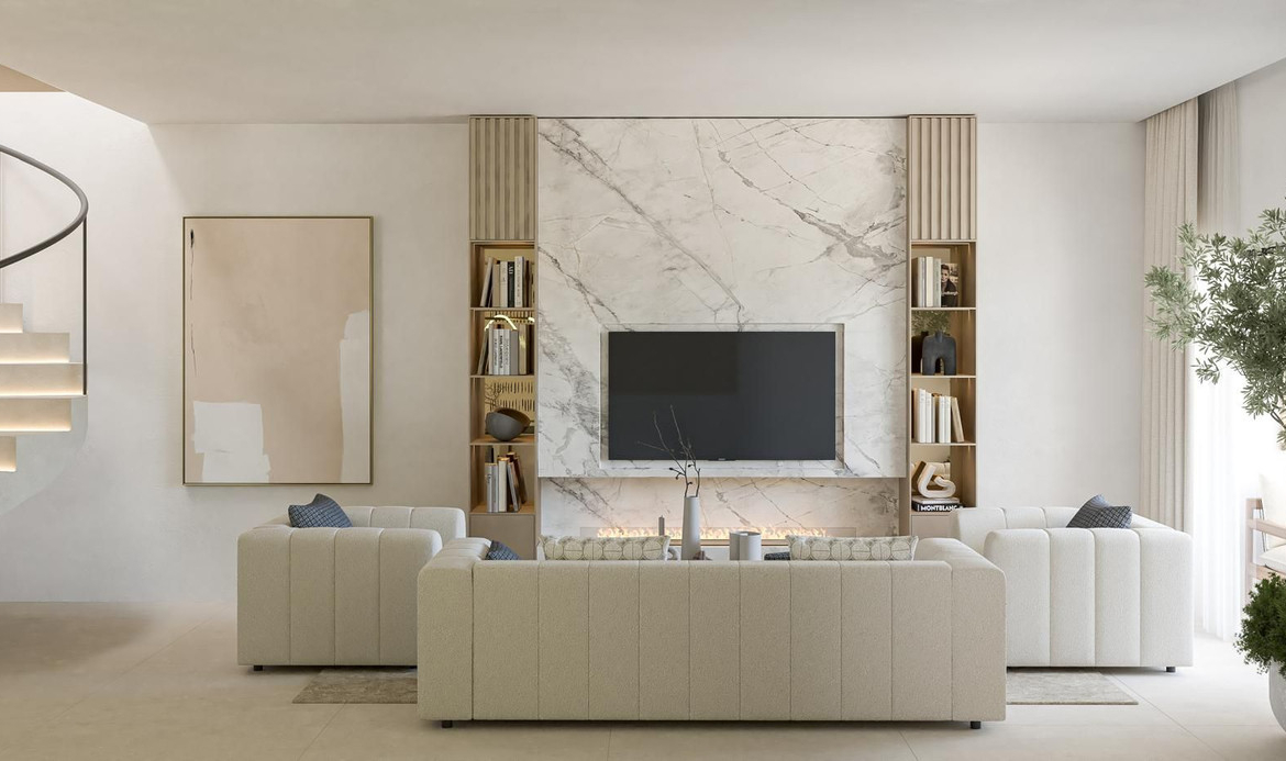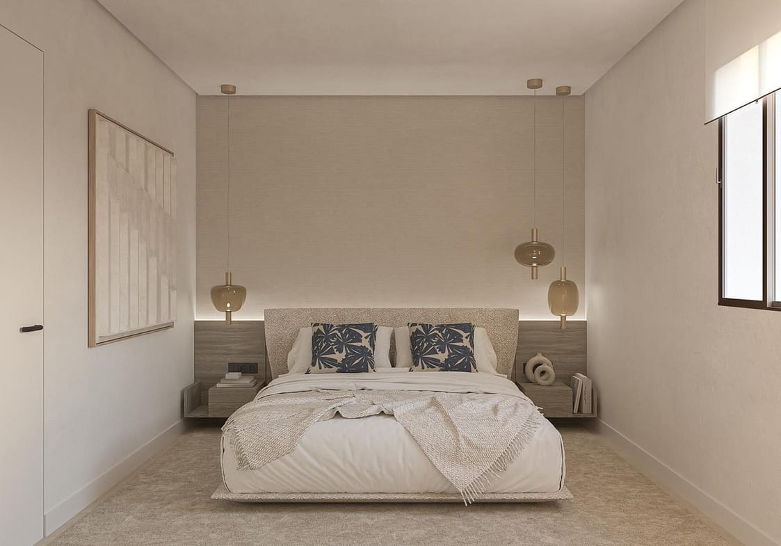 This property is been designed with the owner in mind, originally a four-bedroom property has now been made into a three-bedroom by opening up two bedrooms into one, resulting in one of the most awe-inspiring master bedrooms. With a 15 square meter custom made open wardrobe area, state of the art Porcelanosa bathroom suite, media TV wall with fire place, sea views of Africa from the bed, and a beautifully furnished full width private terrace. A further two double bedrooms and bathroom complete the first floor.