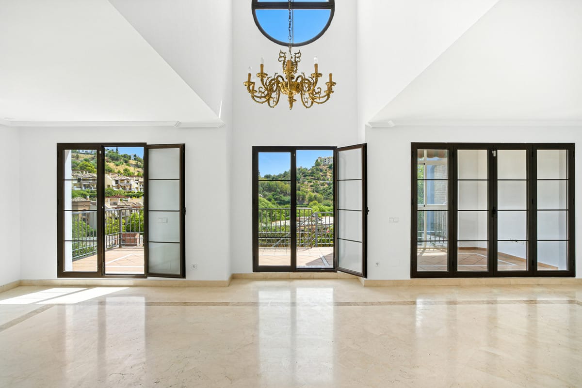 This elegant townhouse is tucked away in the serene and exclusive gated community of Los Almendros, part of the renowned Los Arqueros Golf community. Boasting three floors of versatile living space, the home includes extensive outdoor terraces and private garden plus spectacular country views. Surrounded by lush gardens and two communal pools, the property offers a peaceful retreat while remaining close to the vibrant towns of La Quinta and San Pedro de Alcántara, with Marbella just a short drive away. The main floor features a spacious lounge with a cozy fireplace, an inviting dining area, a fully equipped kitchen with a dedicated laundry room, also an additional room with bathroom that can be used as an office, plus a generous terrace designed for entertaining or relaxing outdoors. Upstairs, there are three large bedrooms, including a master with its own bathroom and terrace, plus two bedrooms sharing a family bathroom. The basement provides a flexible area with private access that can serve as a guest apartment, home gym, or extra storage space. Other features include; fitted wardrobes, private garage with space for one car and air conditioning throughout.
